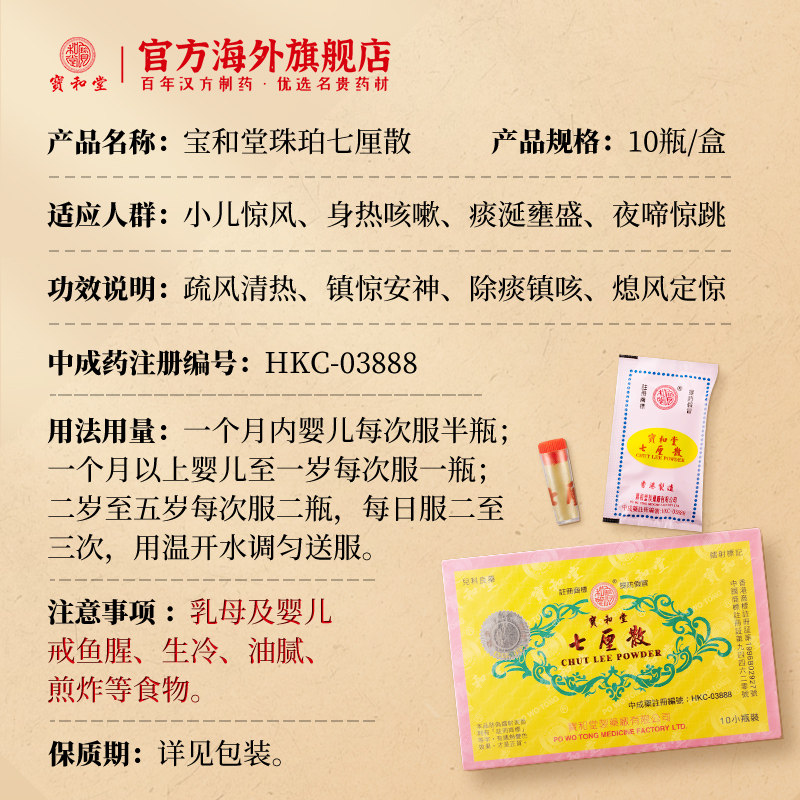📚 品牌直营 宝和堂珠珀七厘散10支/盒 婴幼儿童消食化积清热镇惊