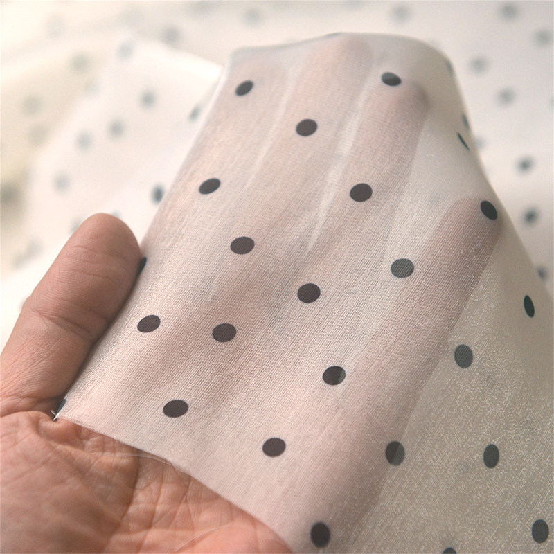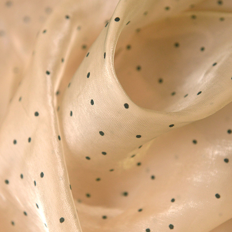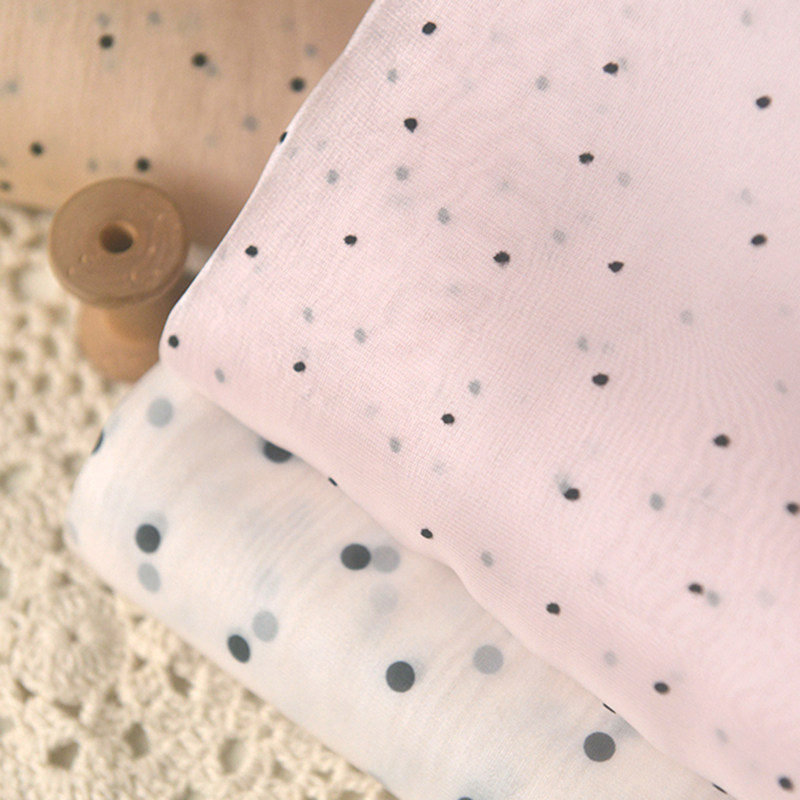 📚 裸粉香槟黑波点韩国纱聚酯纤维 春衬衫连衣长裙发圈童装丝巾面料