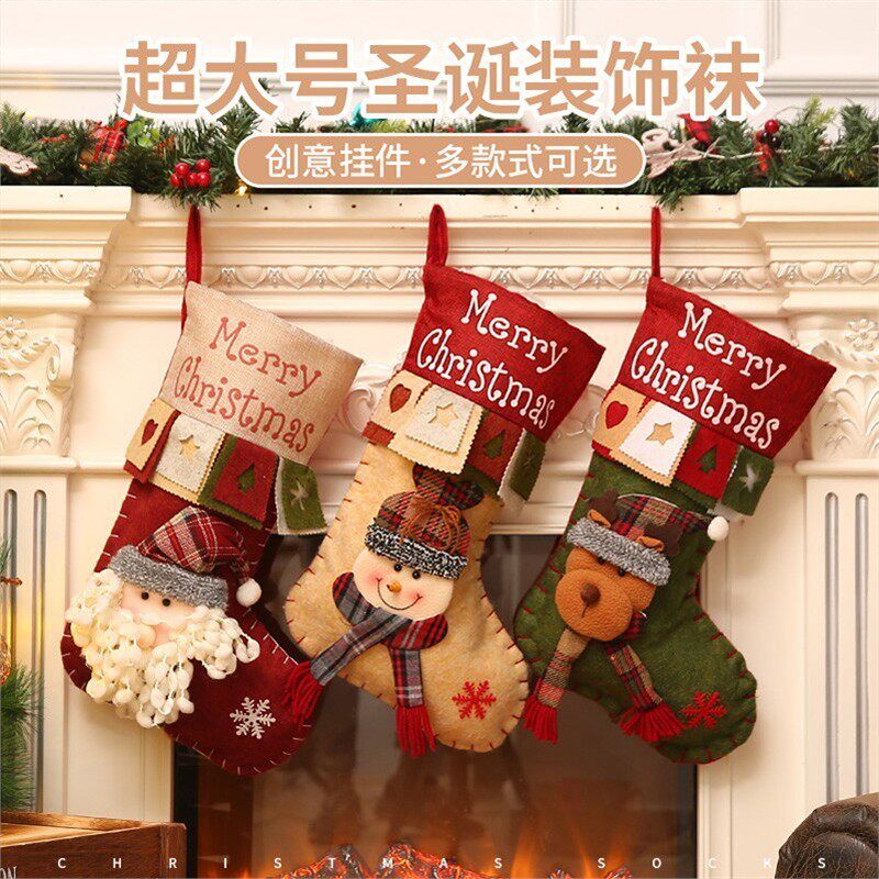 📚 圣诞节礼物袜超大号平安夜圣诞老人礼物袋糖果袋装饰品大袜子儿童