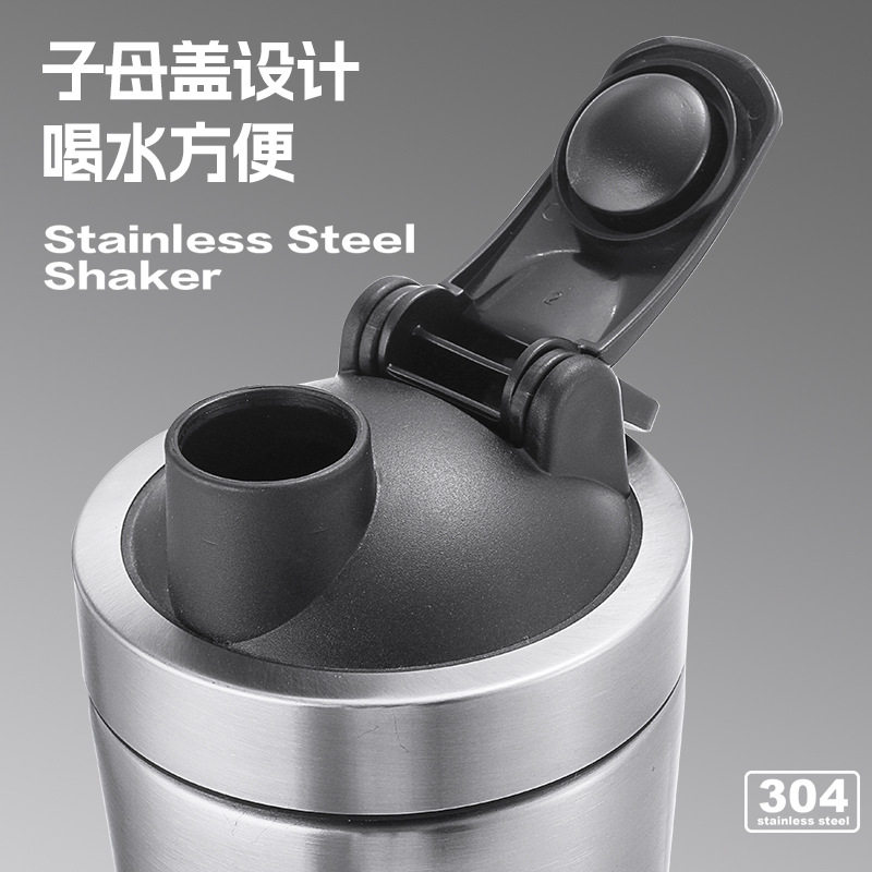 📚 304不锈钢健身摇摇杯带粉盒刻度双节水杯男女运动搅拌杯蛋白粉杯