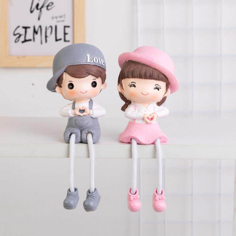 📚 结婚礼物婚庆装饰汽车情侣公仔中式浪漫创意婚房树脂吊脚娃娃摆件