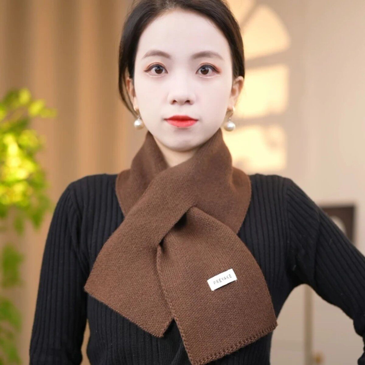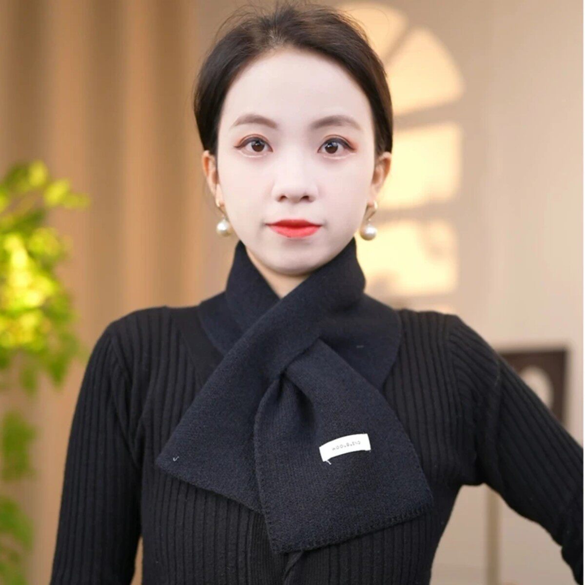 📚 时尚百搭针织羊毛保暖围脖短款交叉小围巾纯色男女通用