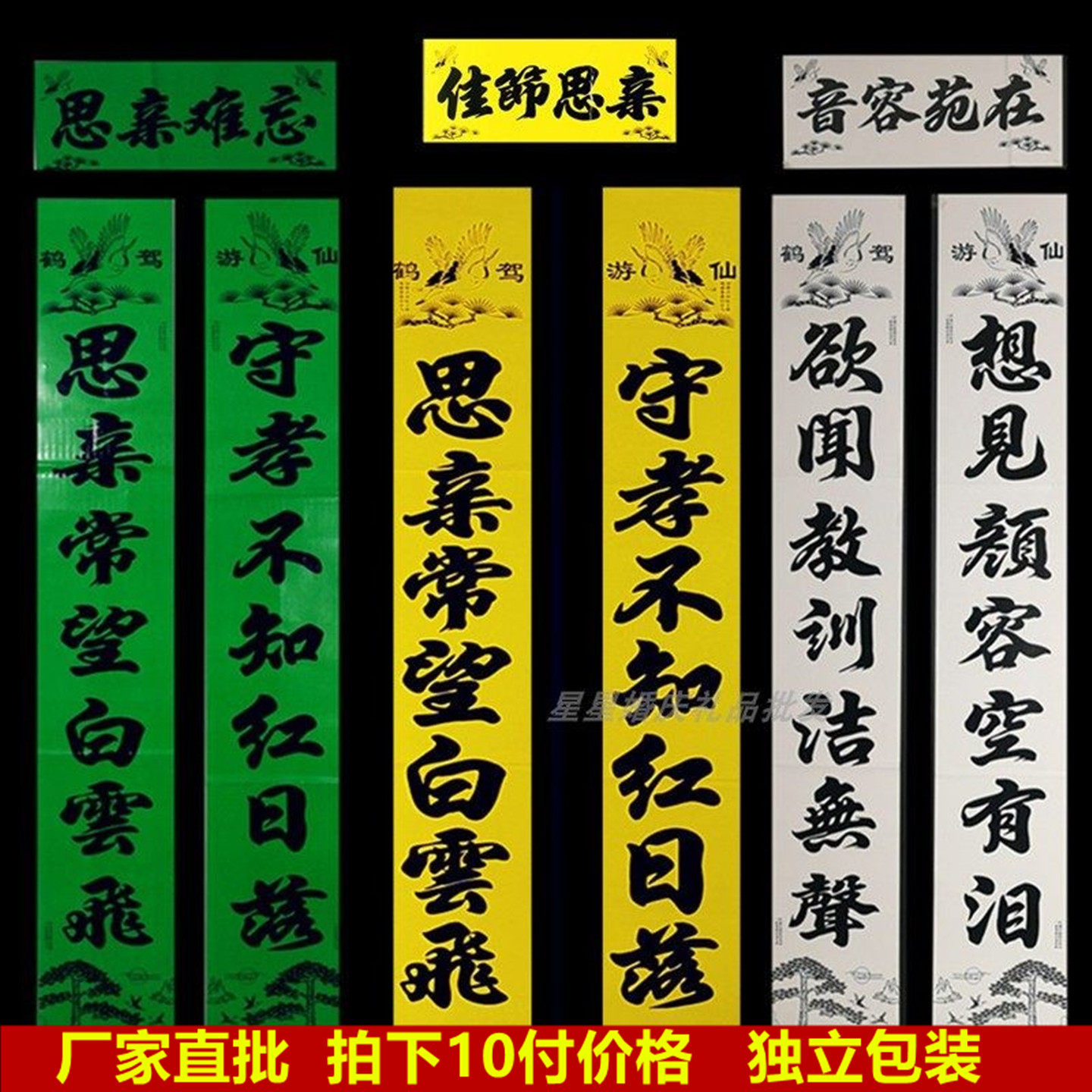 📚 2026年传统亮面思亲绿黄蓝白孝联孝词春联年画铜版纸对联厂家直批