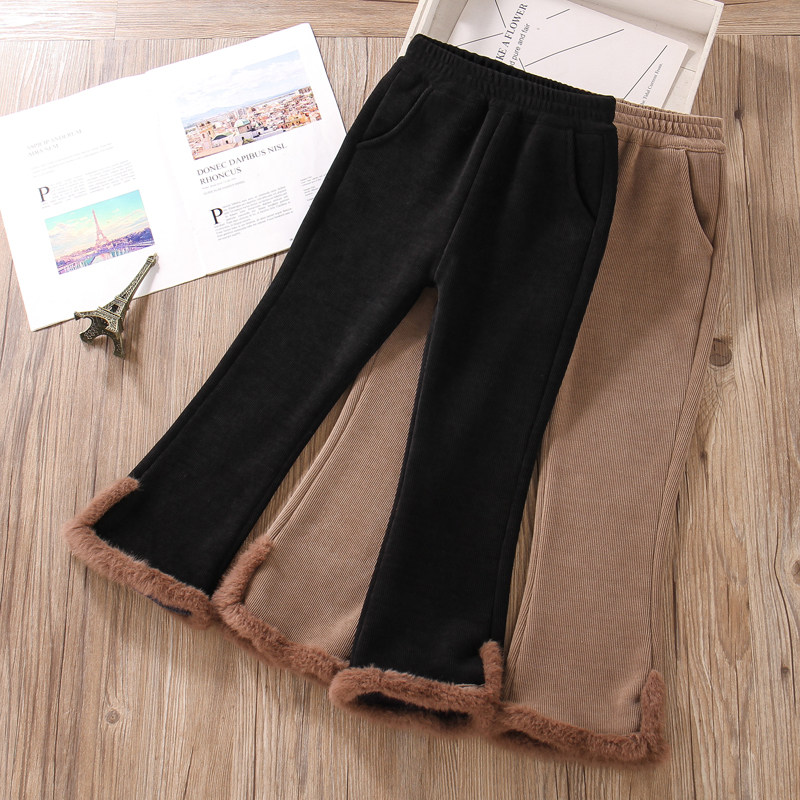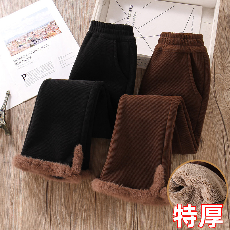 📚 女童冬季加绒加厚裤子一条过冬特超厚保暖中大童一体羊羔绒喇叭裤