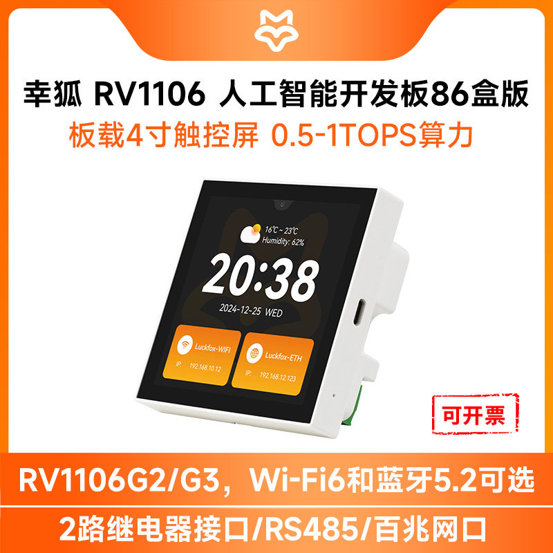 📚 微雪 幸狐luckfox 瑞芯微RV1106开发板 嵌入式 4寸触控LCD 86盒