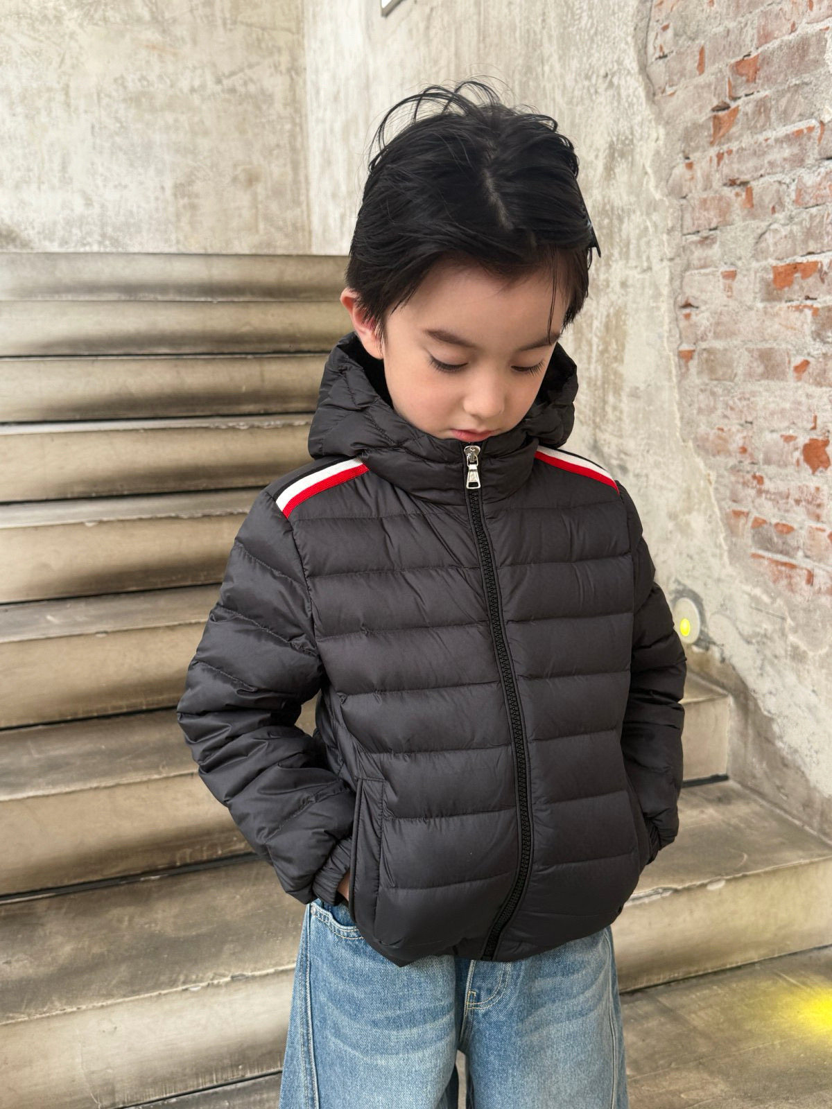 📚 25冬季新款童装MC徽章彩色织带儿童羽绒夹克外套男童夹克羽绒服