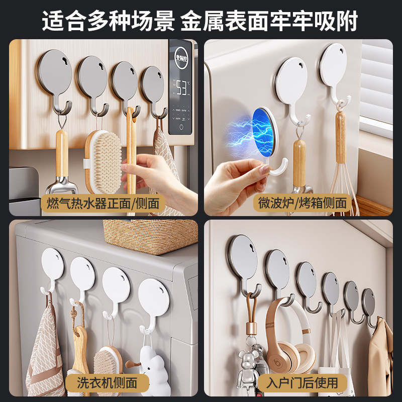 📚 厨房磁吸挂钩冰箱侧面强吸铁石免打孔门后无痕磁铁挂勾配件壁挂式