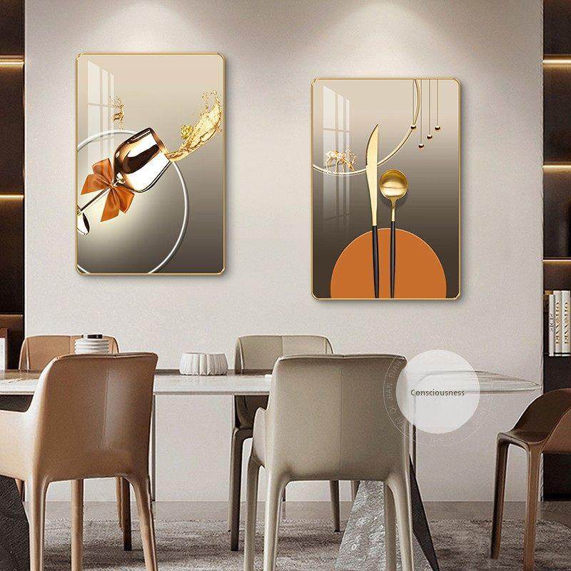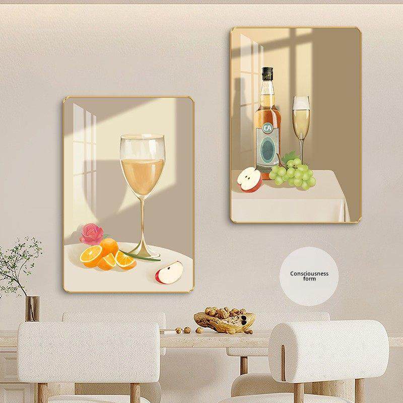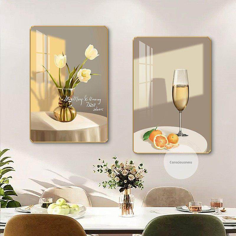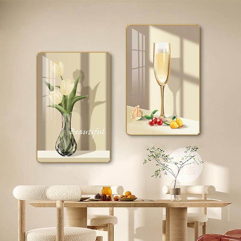 📚 现代极简主义餐厅装饰画无障碍豪华酒杯花餐桌背景墙挂画厨房墙两