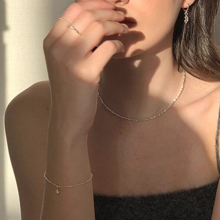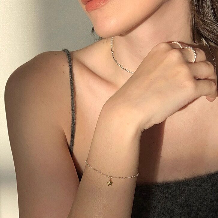 📚 LLab s925银 小星星细手链小众简约撞色设计可调节细珠珠链