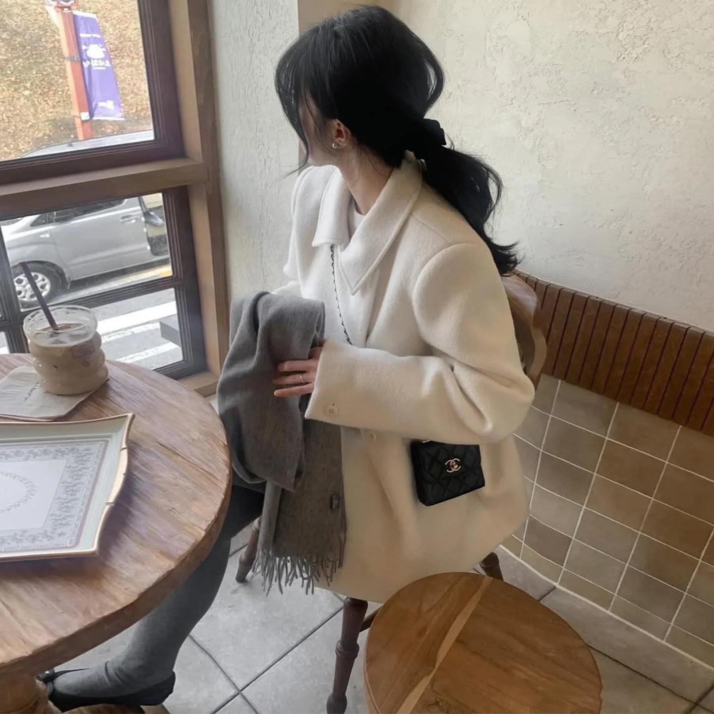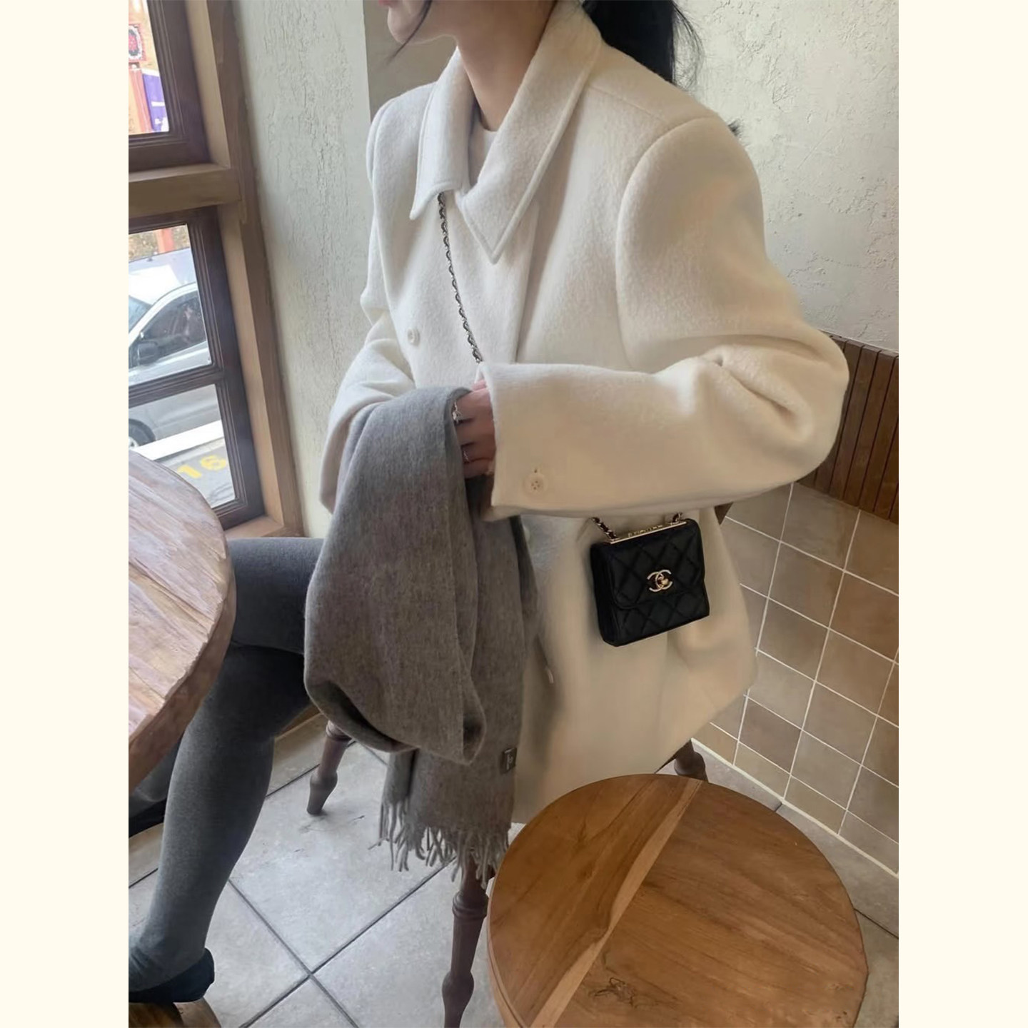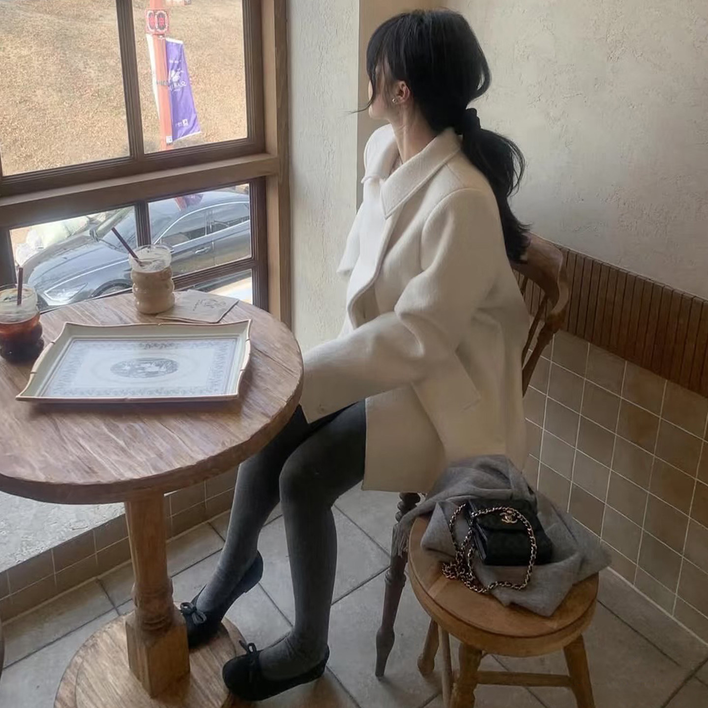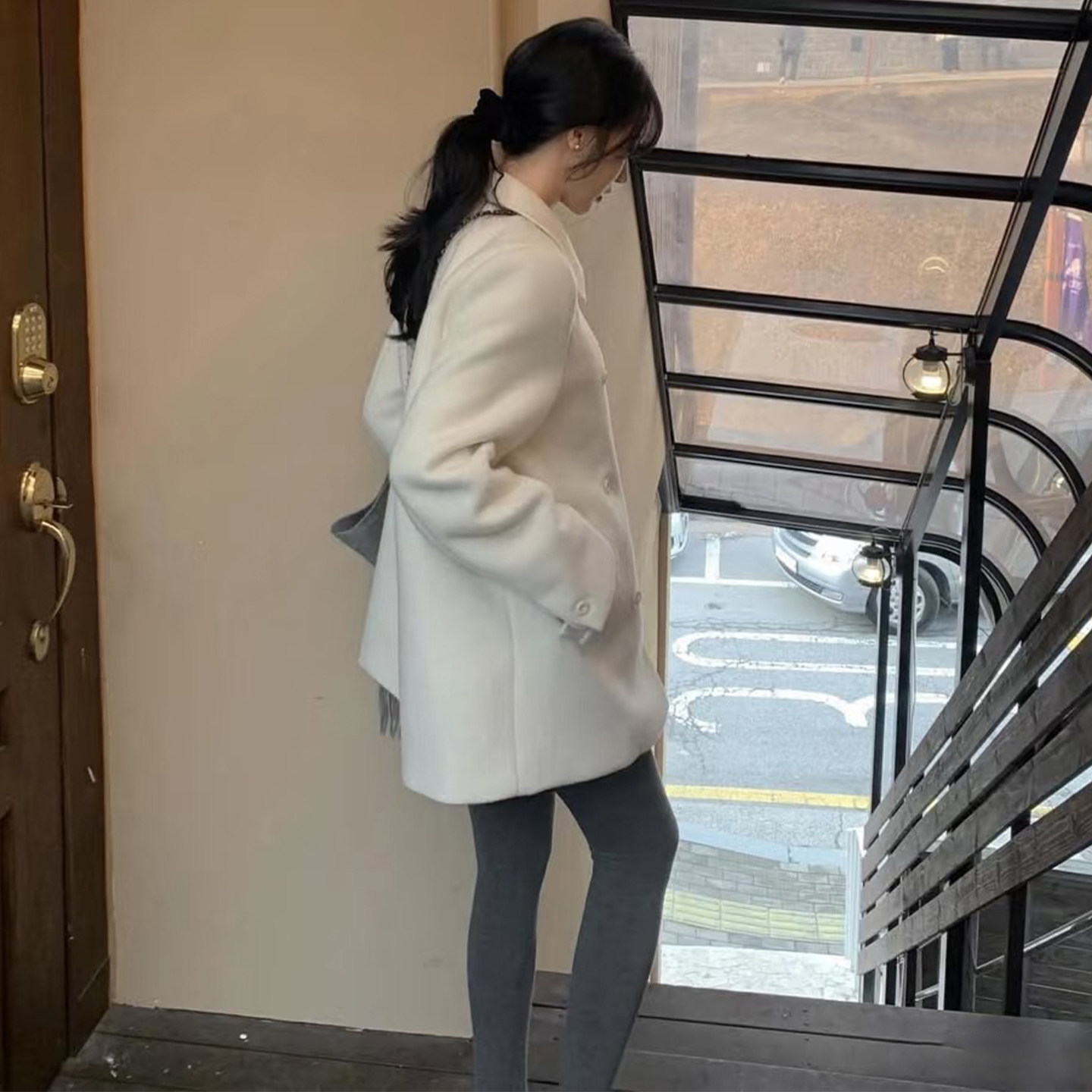 🌸🍁冬日时尚新宠来啦!今天我要给大家种草一款超赞的韩式白色双排扣毛呢外套,简直是秋冬的必备神器!