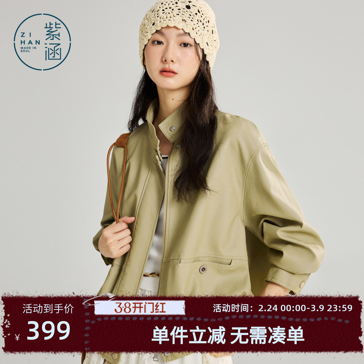 💥种草!紫涵绿色立领PU皮衣女春季新款,高级气质休闲宽松皮夹克外套,券后仅799💰