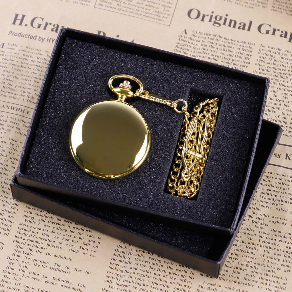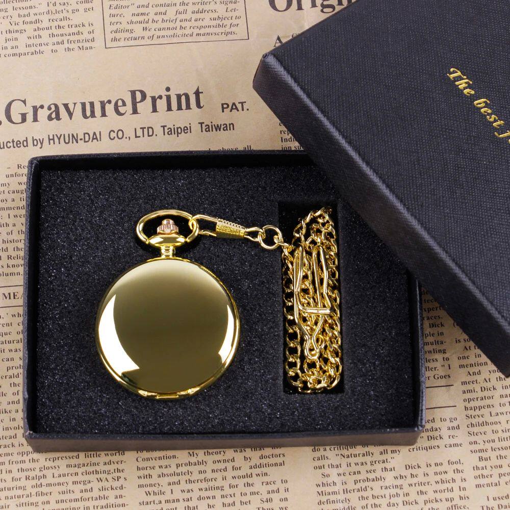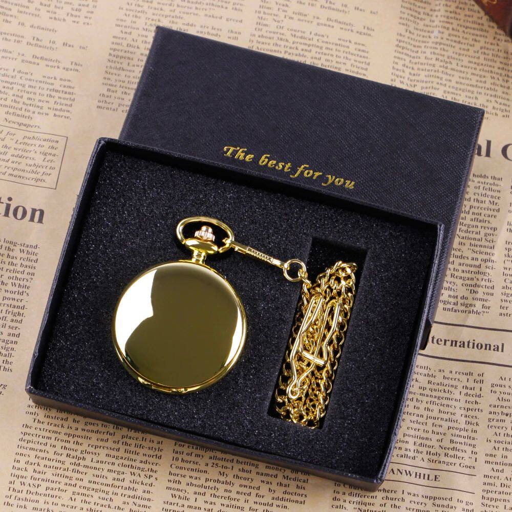 📚 Luxury Gold Quartz Pocket Watch Gift Box Set For Family Fash