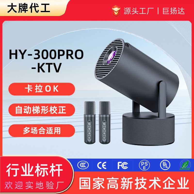 📚 HY300pro自带麦克风投影仪 家用K歌一体机卧室投墙KTV高清投影機