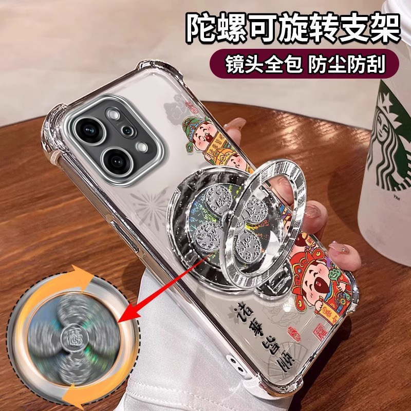 📚 适用财神风生水起OPPOReno14手机壳13带支架12专用11新款10pro+女中国风男9防摔8保护套7se硅胶6全包5K新中式