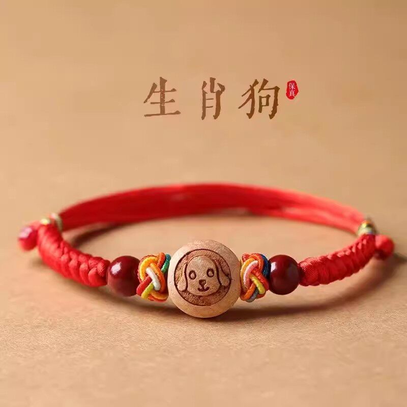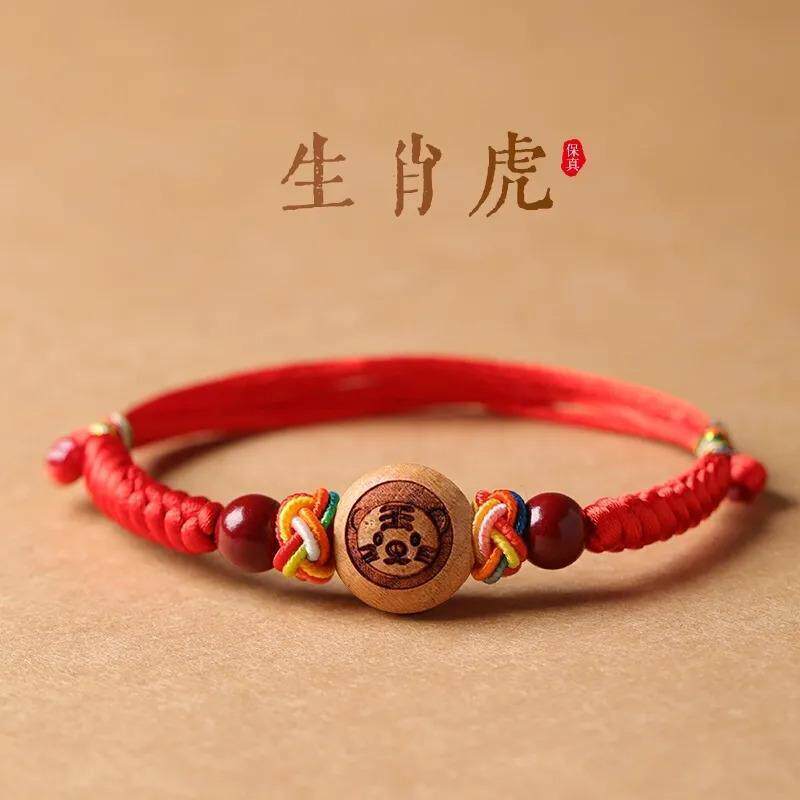 📚 儿童十二生肖桃木红绳手链马年本命年手串压惊护身平安男女童手绳