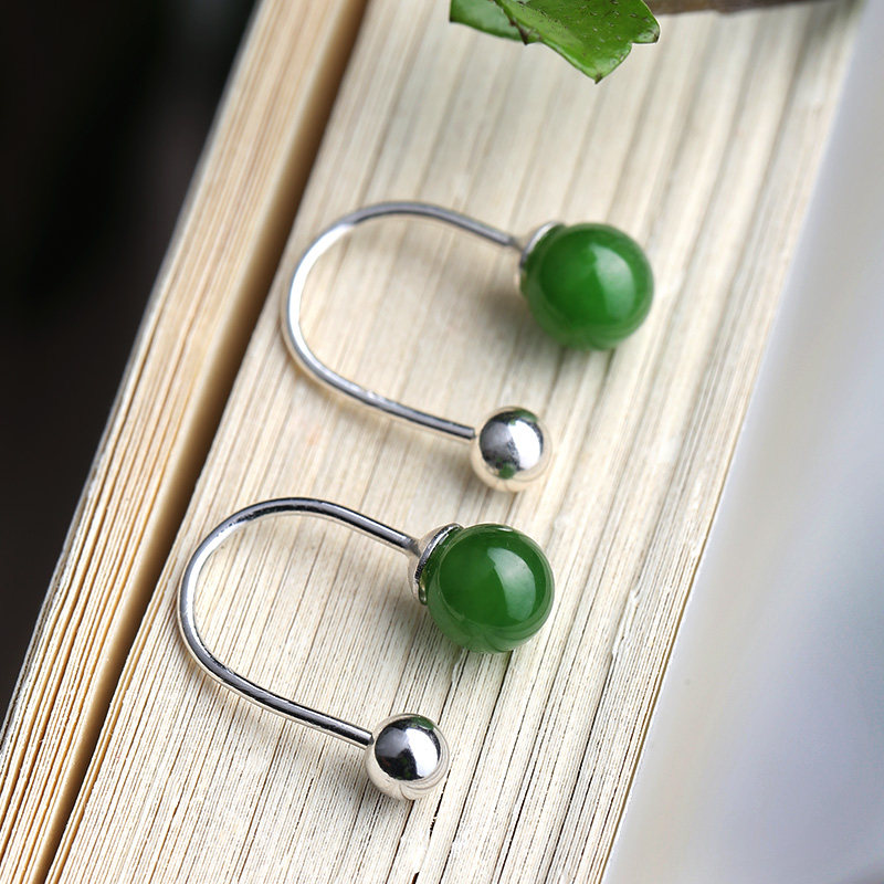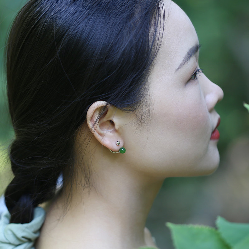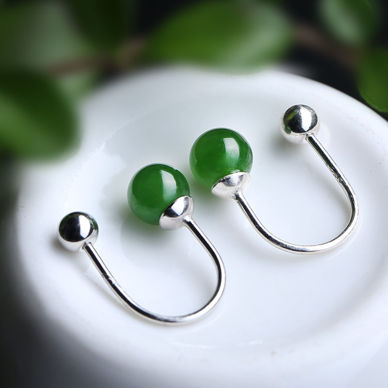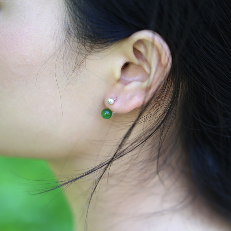 📚 天然和田玉碧玉耳钉女925纯银拧螺丝固定气质简约菠菜绿玉石耳环