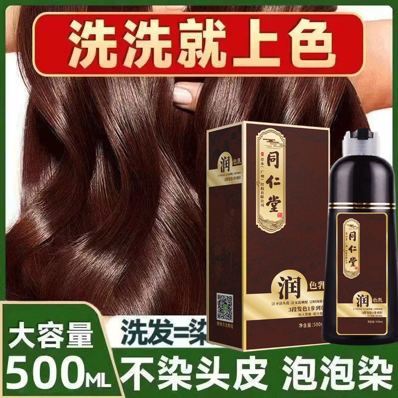 📚 同仁堂植物天然泡泡染发膏盖白发不沾头皮中老年人可用在家就能染