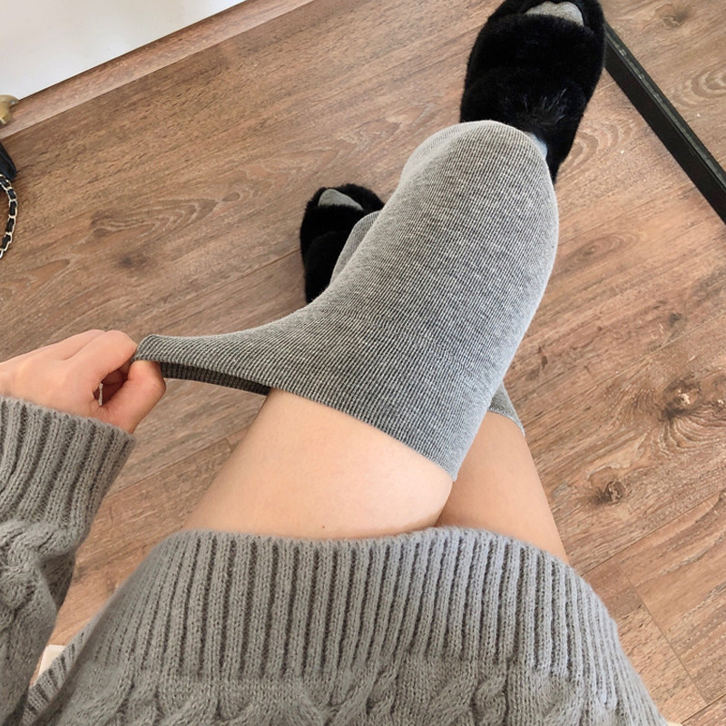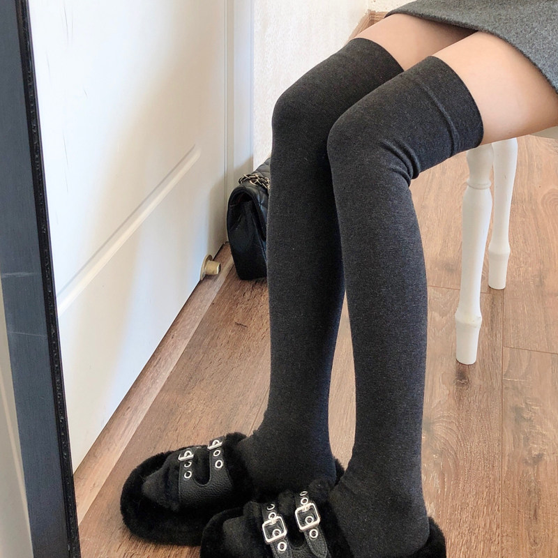 📚 加厚烟灰色长筒袜女秋冬加绒黑色过膝袜JK大腿袜保暖米白色高筒袜