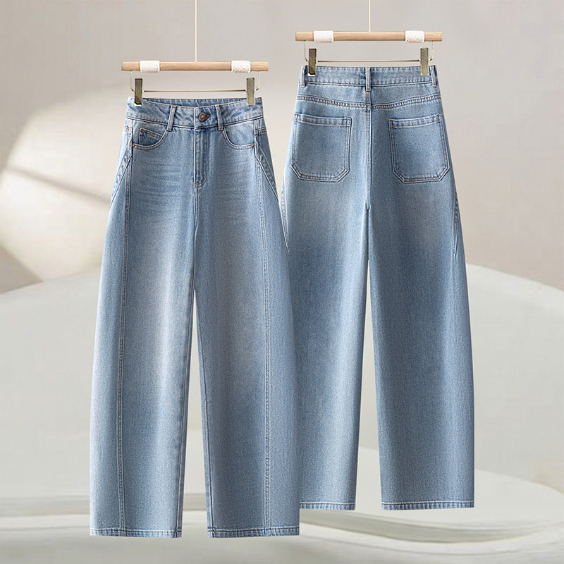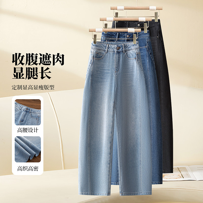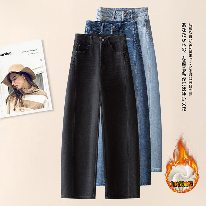 📚 复古牛仔裤秋冬加厚加绒小哈伦裤百搭简约宽松直筒休闲减龄长裤女