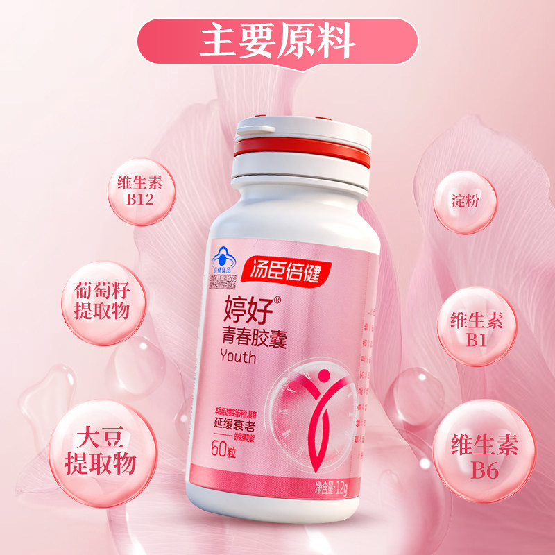 📚 汤臣倍健婷好青春胶囊60粒成年女性延缓衰老大豆异黄酮正品旗舰店
