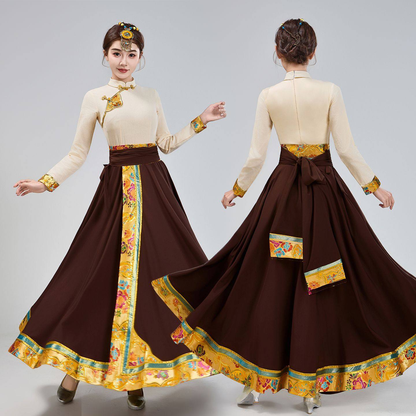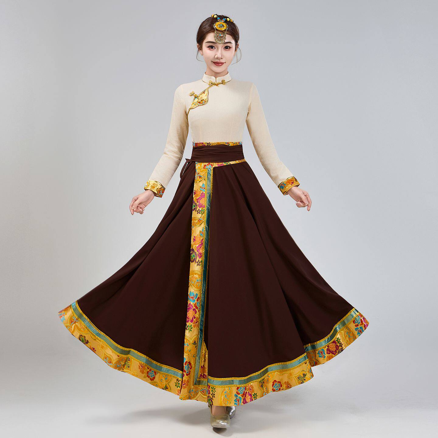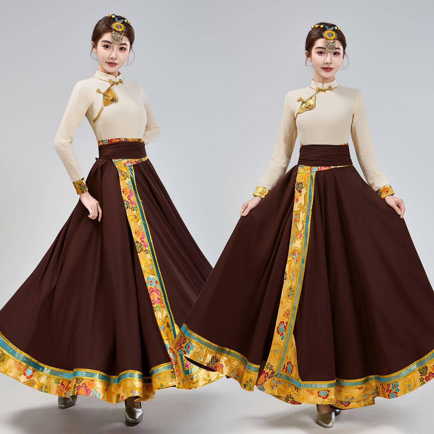 📚 新款藏族舞蹈服半身裙艺考练习裙广场舞表演学生舞蹈民族风大摆裙