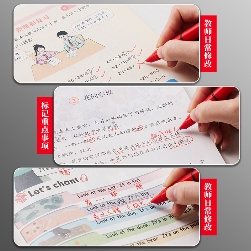 📚 红笔老师专用钢笔批改作业教师红色墨囊粗头美工粗教室可替换尖墨水红通用小学生弯头弯尖可换批学生改粗笔