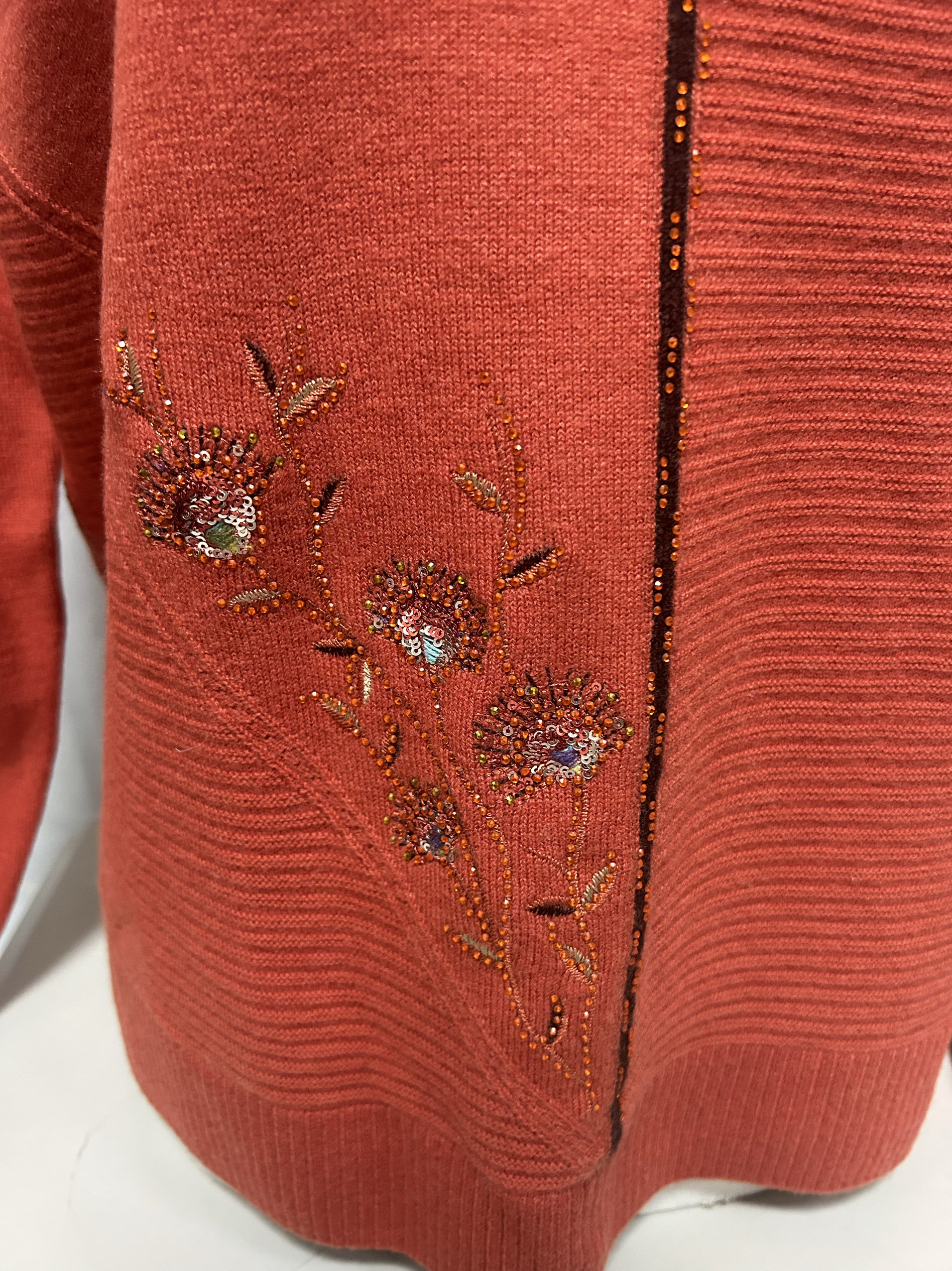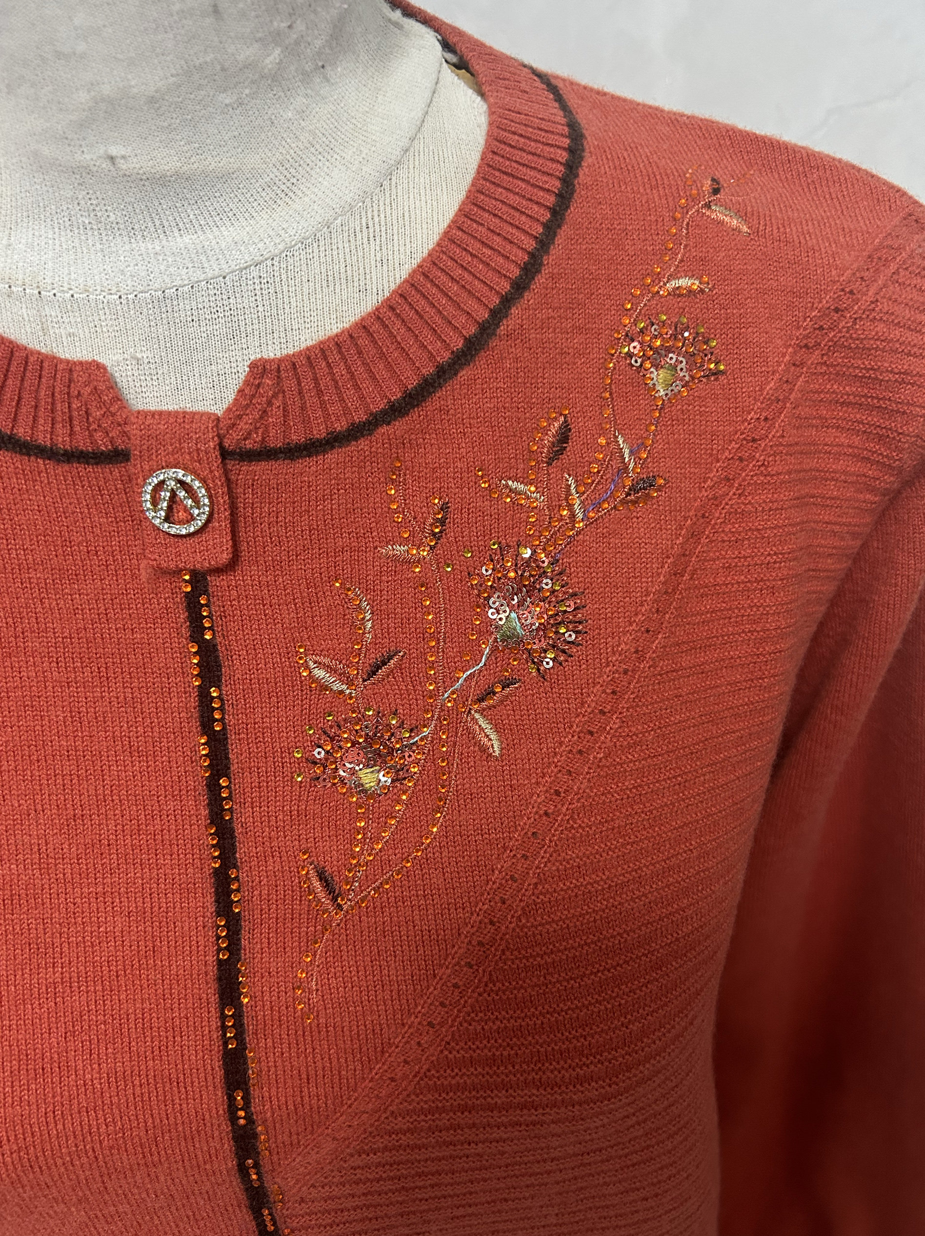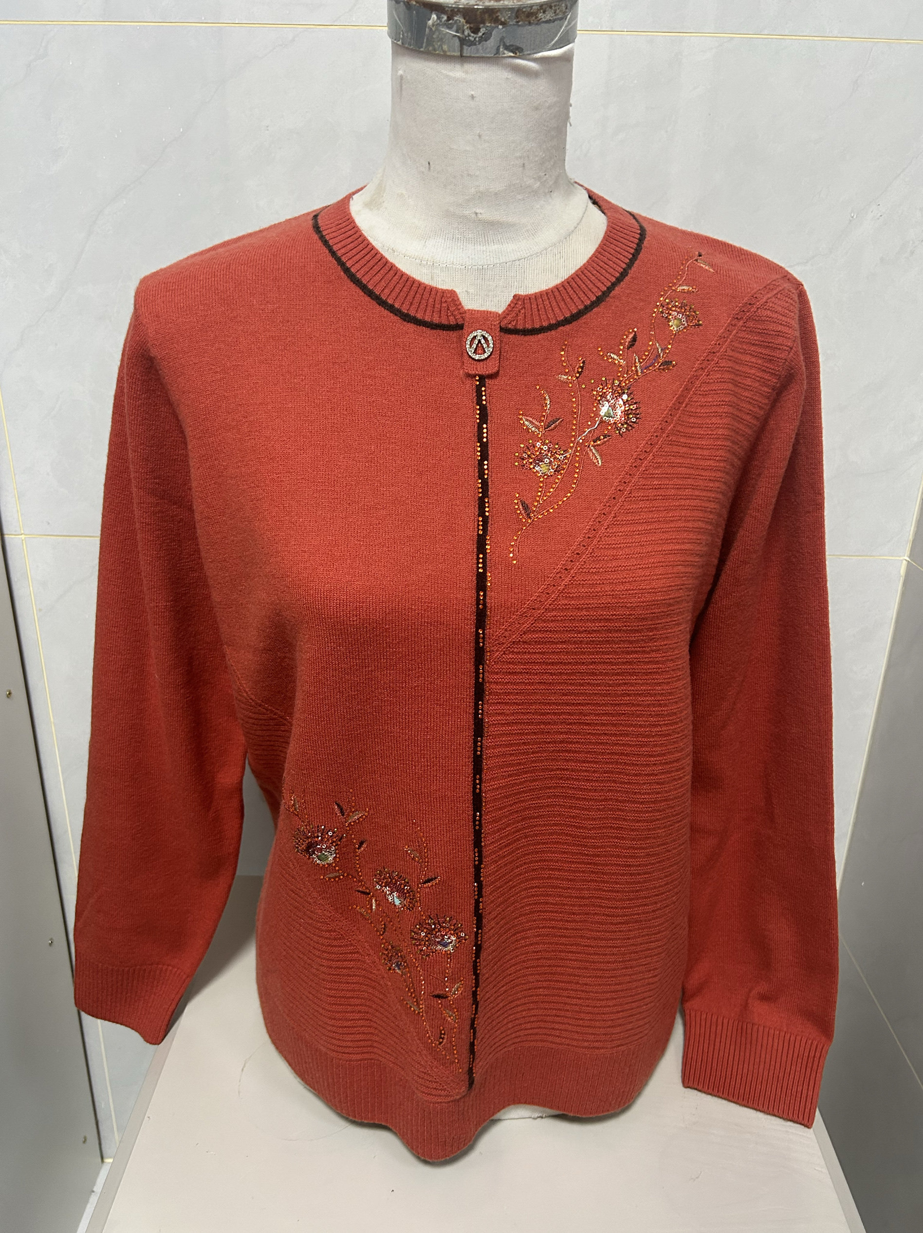 📚 清仓桔红色圆领烫钻女羊毛衫100%全羊毛衫毛衣打底衫