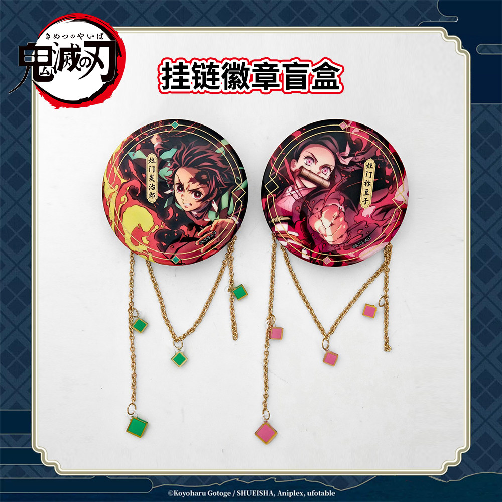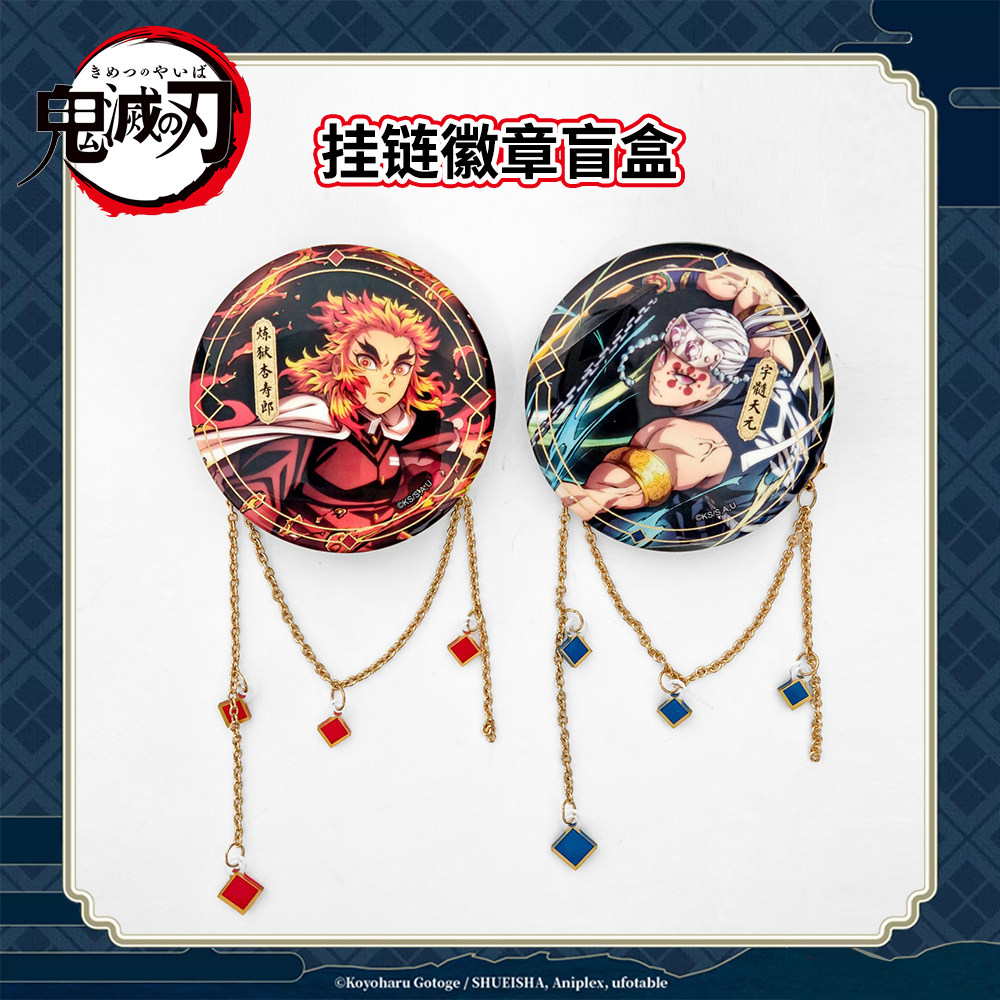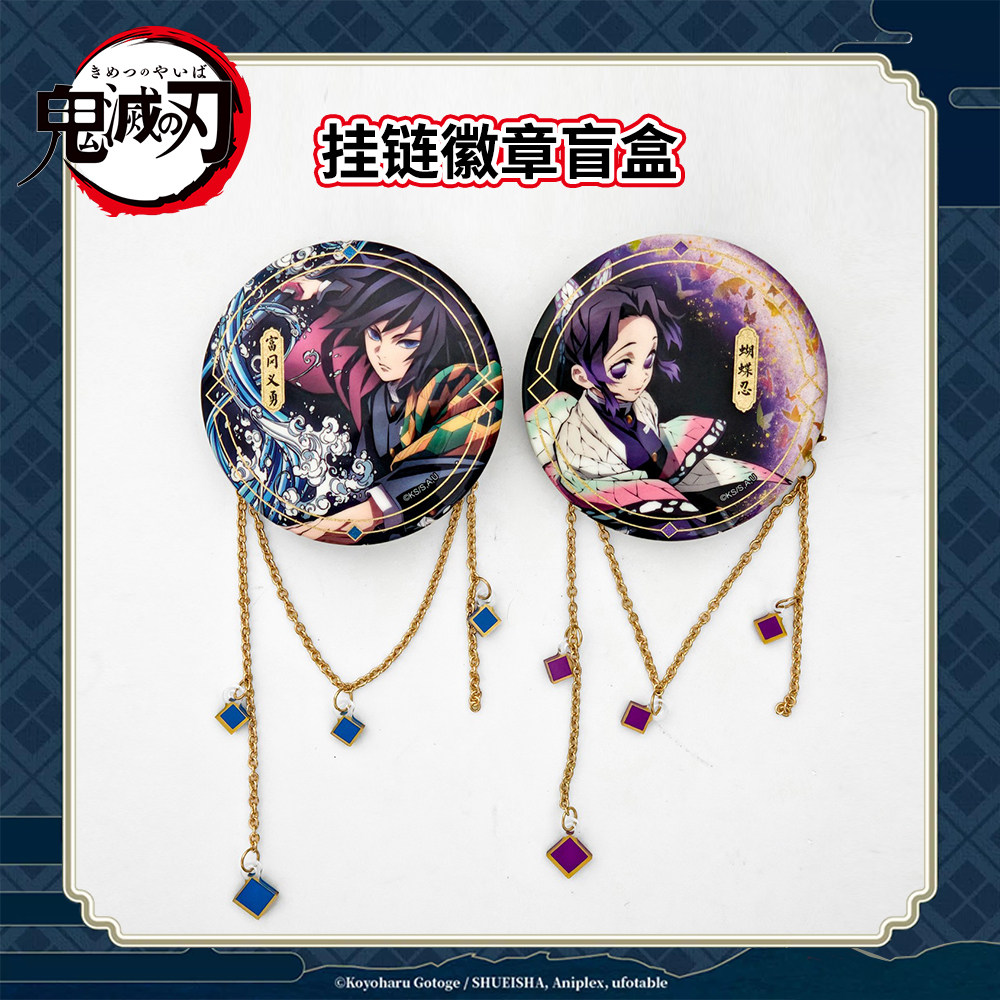 📚 官方正版鬼灭之刃周边盲盒吧唧挂链徽章动漫富冈义勇蝴蝶忍谷子