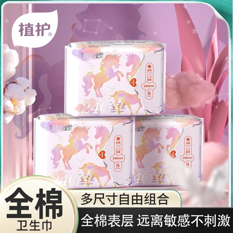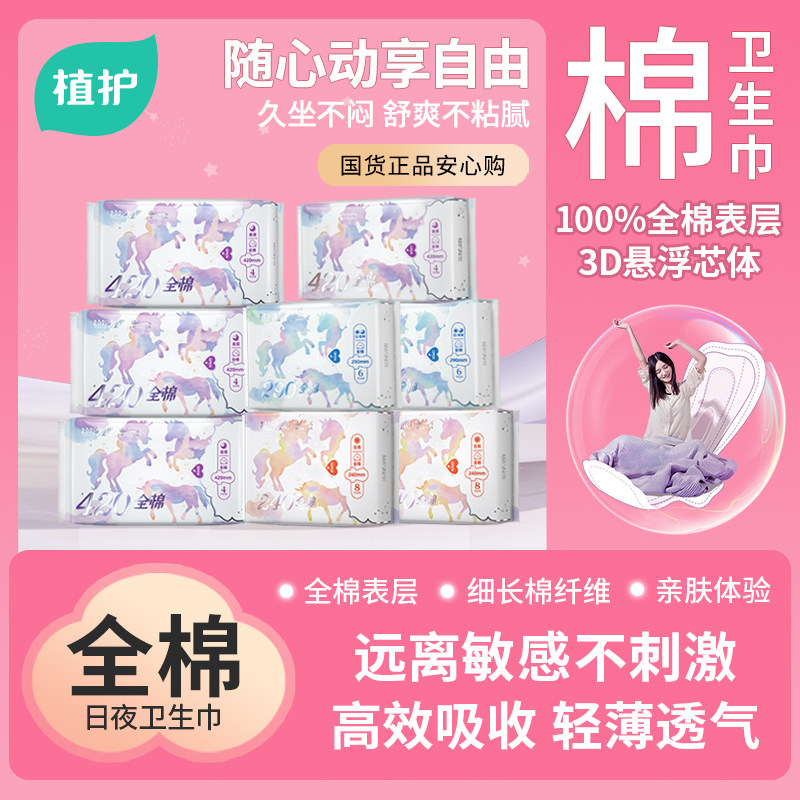 📚 植护卫生巾官方旗舰店正品全棉日夜组合装超薄透气姨妈巾整箱批发