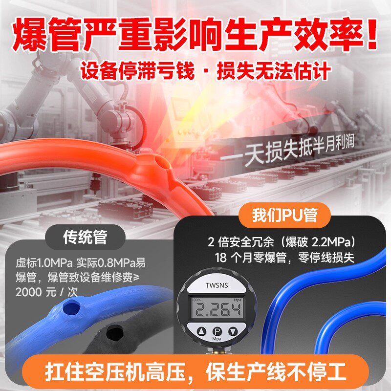 📚 TWSNS台匠山耐斯气管空压机气泵防漏气防爆pu气管透明气动软管