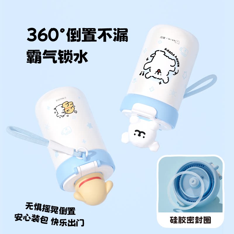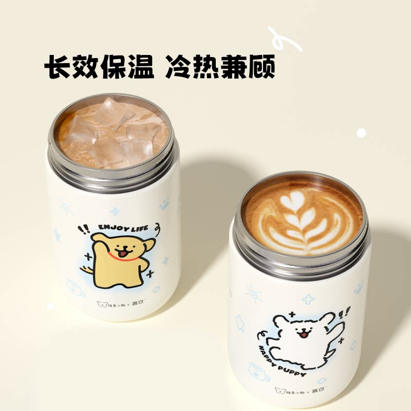 📚 言仓线条小狗保温杯316不锈钢便携大容量双饮水杯可爱新年礼物