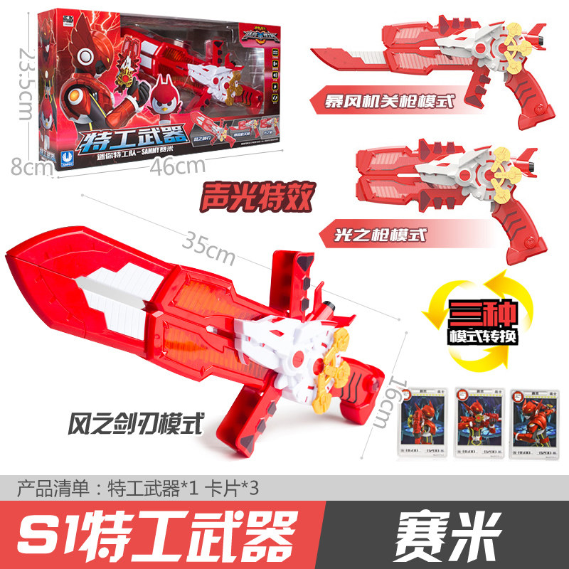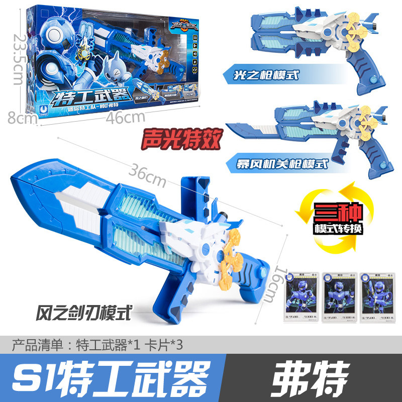 📚 迷你特工队武器玩具光之枪变形刀枪福特露西雷特攻队男孩发光宝剑