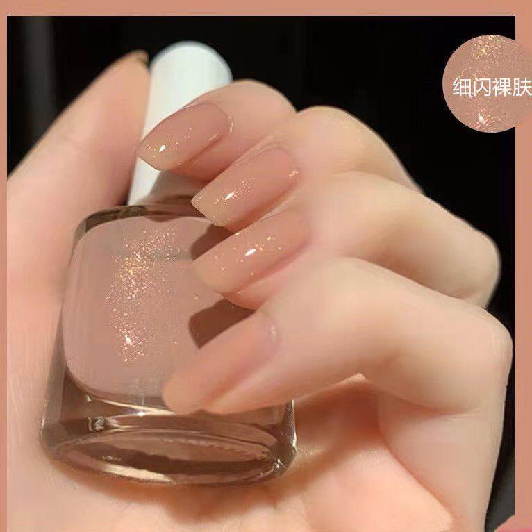 📚 指甲油甲油胶免烤快干持久2023年新款裸色脚银色红色不用烤灯的