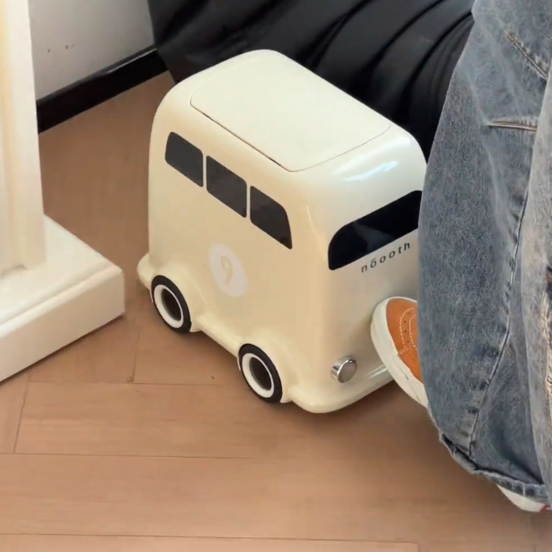 📚 诺室巴士垃圾桶家用带盖客厅卧室厕所高颜值复古室内可移动垃圾筒