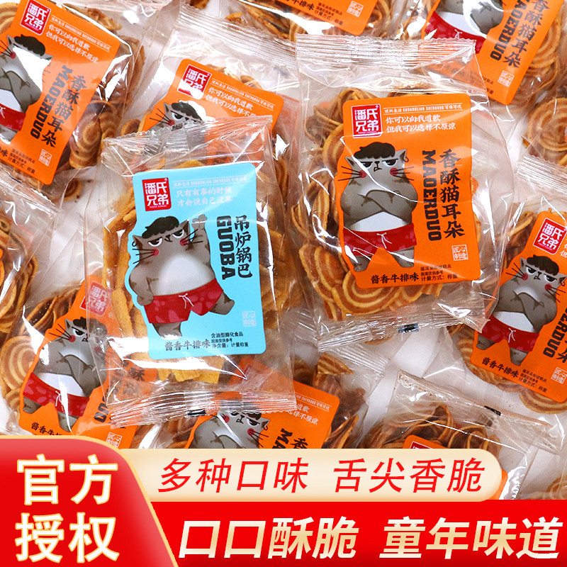 📚 潘氏兄弟猫耳朵大大脆花椒锅巴比萨卷散称2斤8090后怀旧小吃零食