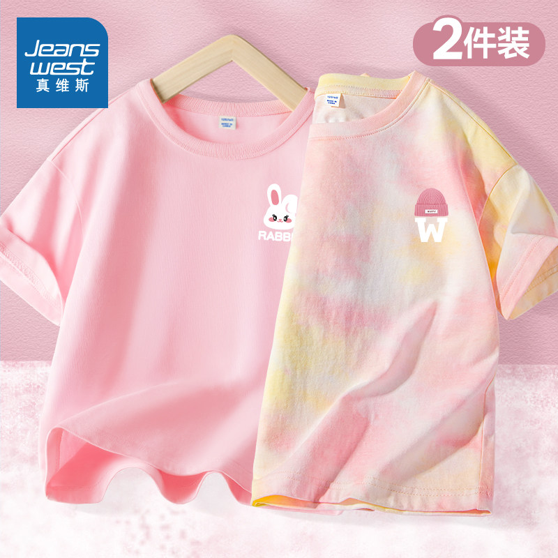 📚 真维斯童装儿童t恤夏季纯棉上衣中大童扎染半袖女童短袖2026新款