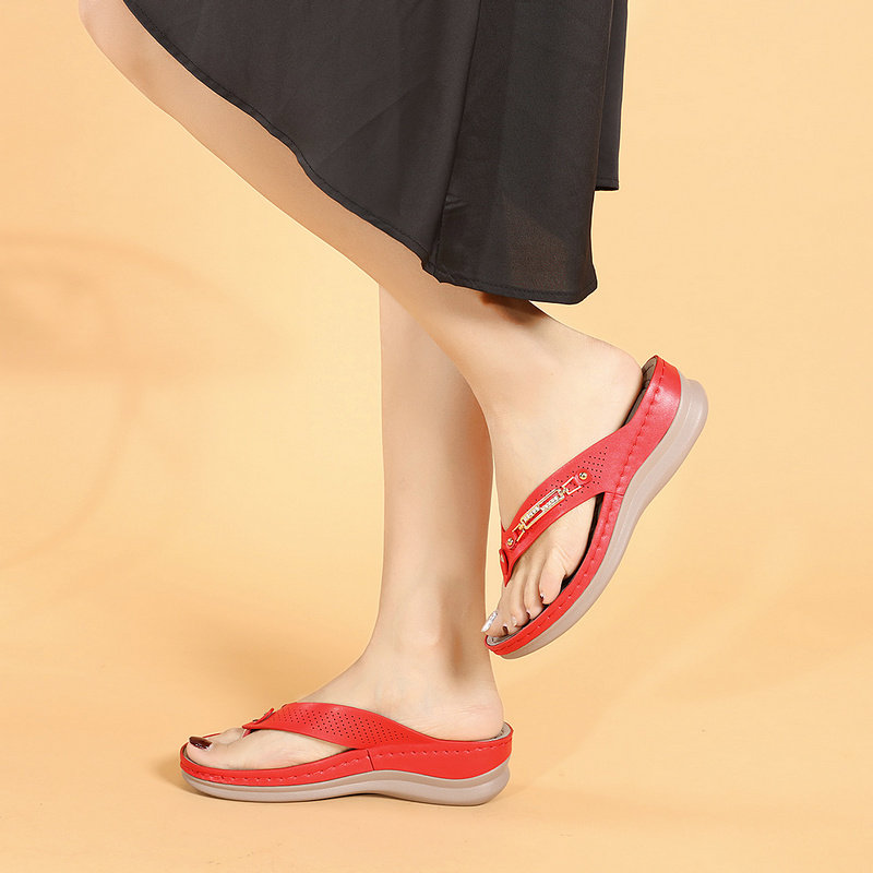 📚 民族风人字拖夏拖鞋女外穿时尚夹脚沙滩防滑软底坡跟厚底夹板凉拖