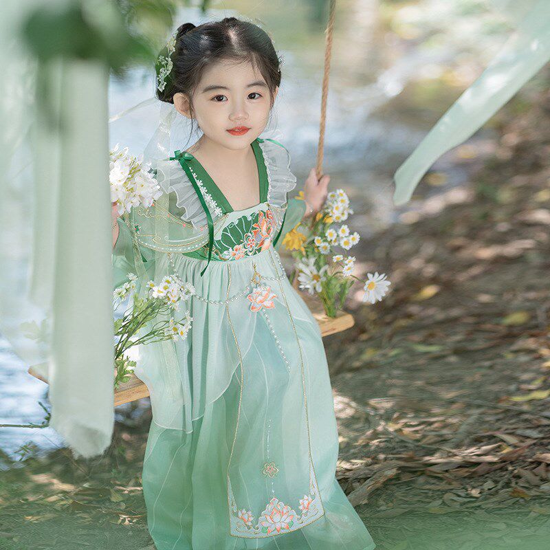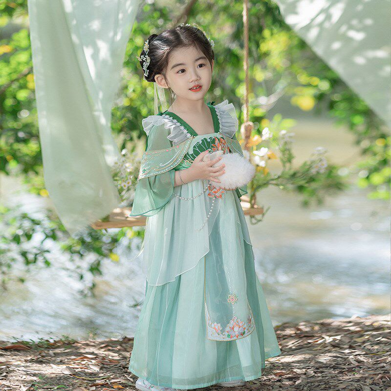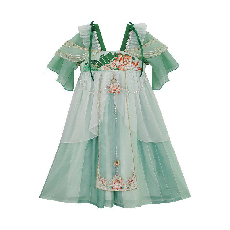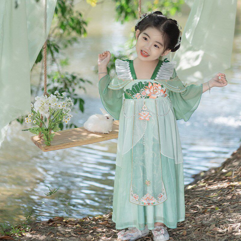 📚 水宫仙子汉服女童夏季暑期古装公主新中式国潮古风儿童唐风连衣裙