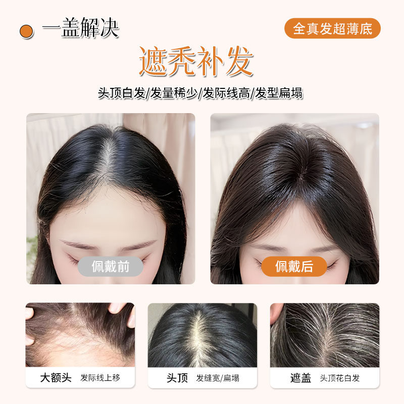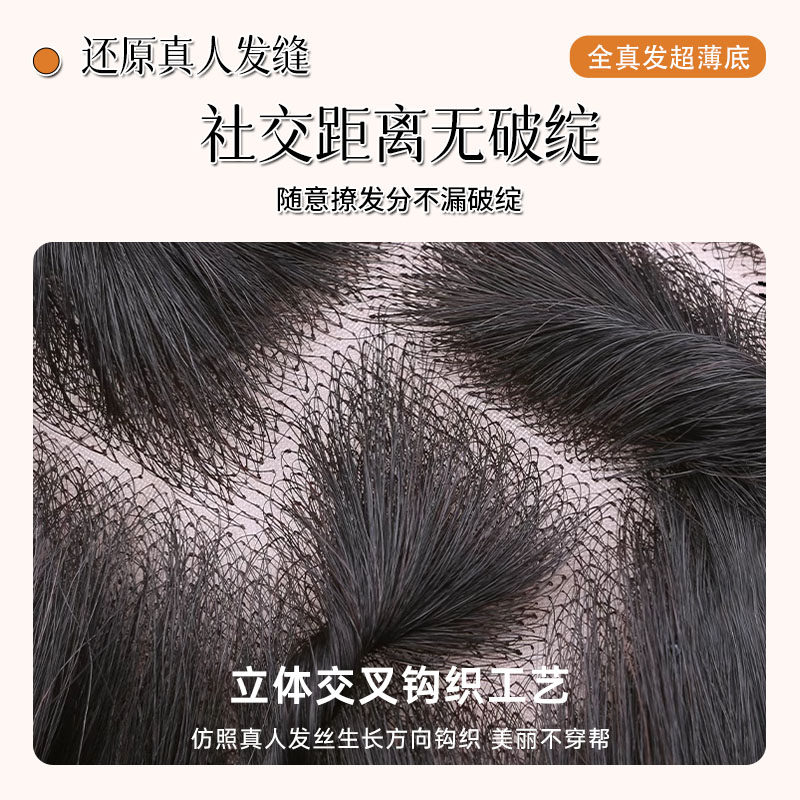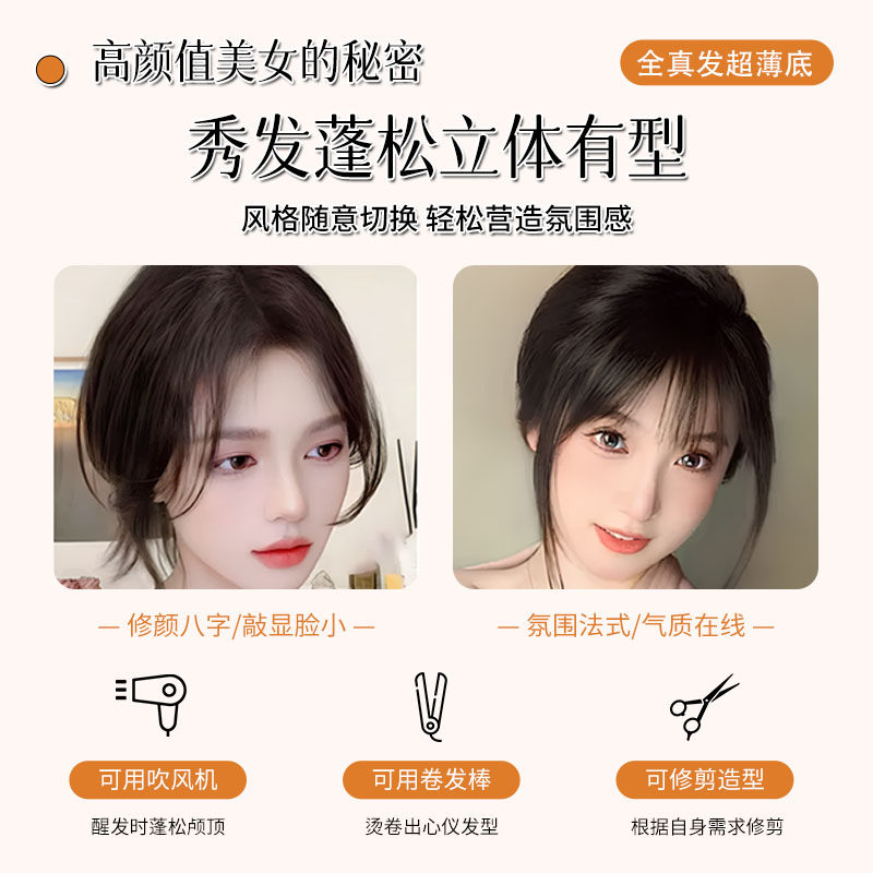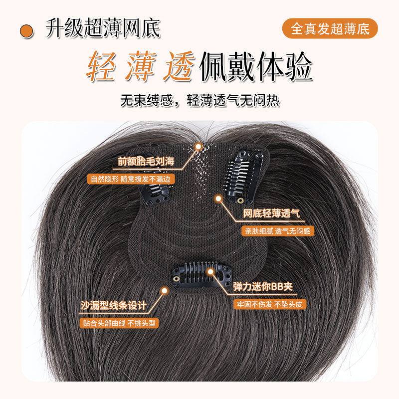 📚 半韵刘海假发片女头顶补发增发量真发蓬松高颅顶无痕自然轻薄