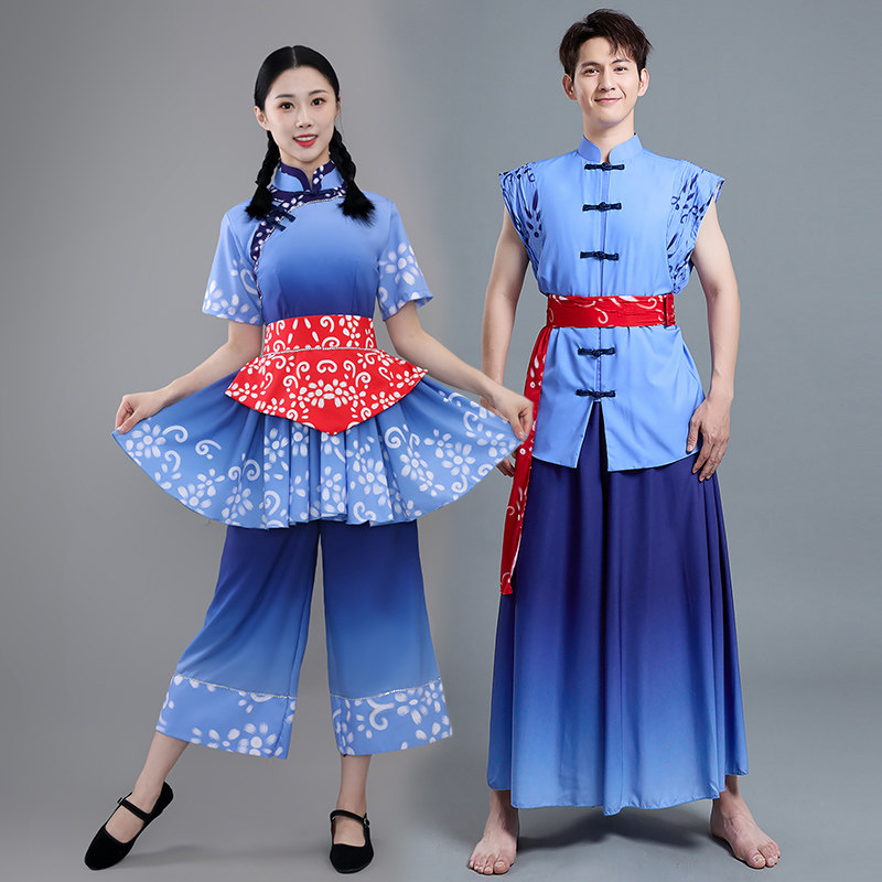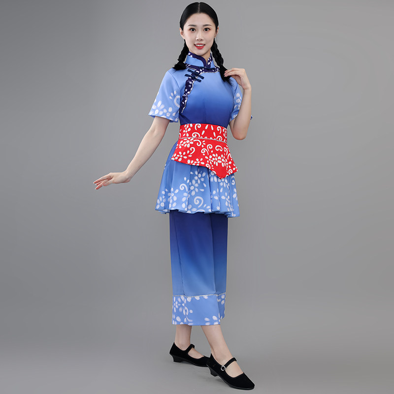 📚 2023新款村姑丰收节南泥湾采茶扇子舞斗笠舞秧歌服舞蹈演出服男女