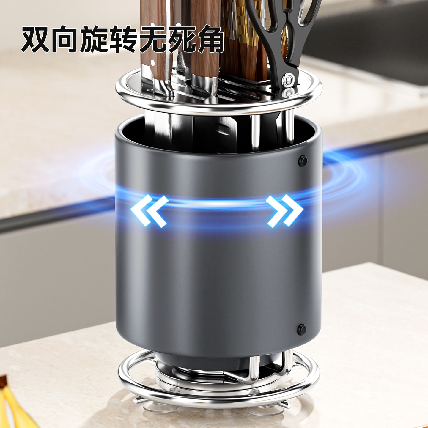 📚 厨房台面旋转刀架不锈钢置物架多功能菜刀筷子筒刀具一体收纳架子