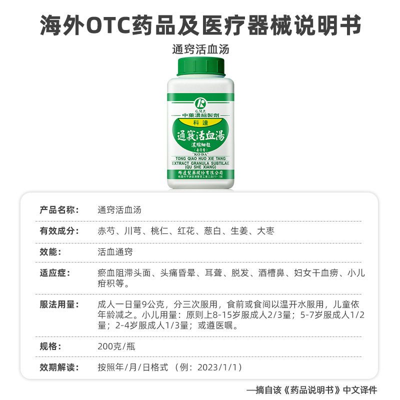 📚 【自营】科达制药通窍活血汤祛瘀通窍活络淤血脱发耳聋偏头痛200g