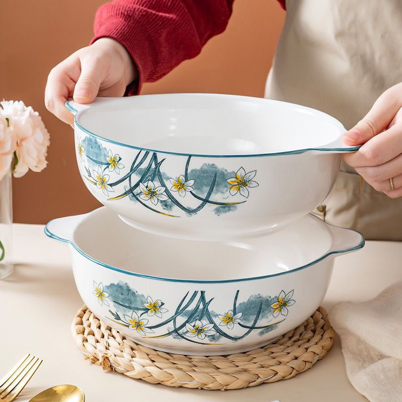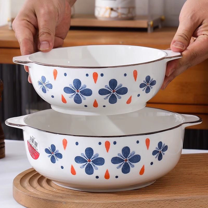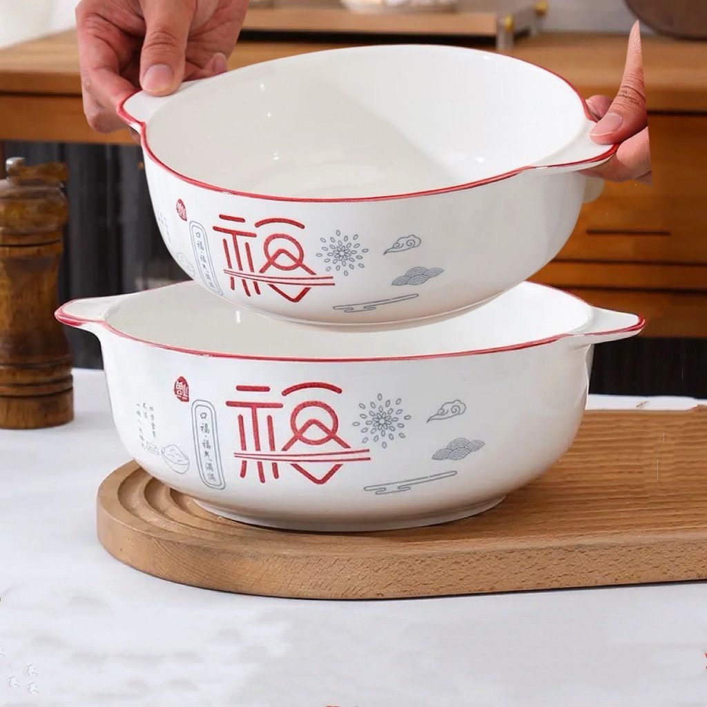 📚 新品双耳汤碗家用大碗陶瓷汤锅釉下彩高档酸菜鱼碗创意大汤盆餐具