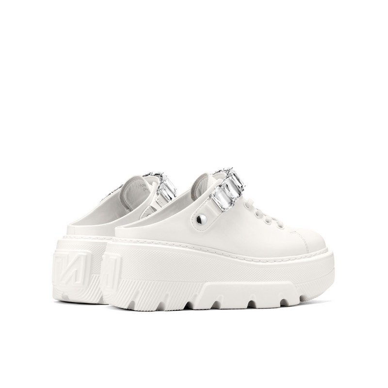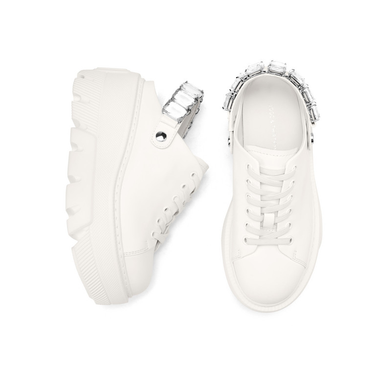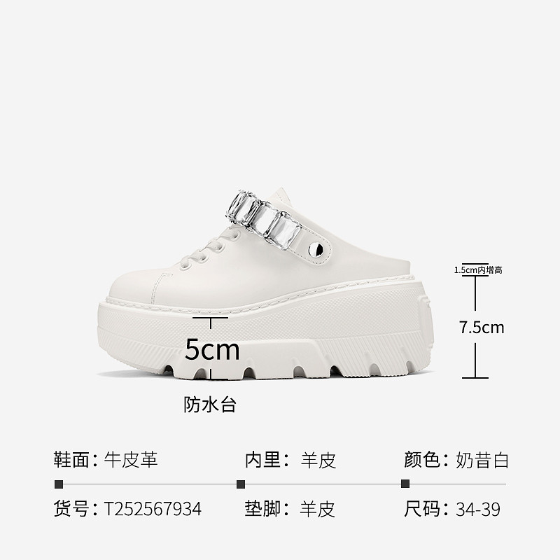 📚 【水晶之恋】JOOC玖诗厚底小白鞋女2026夏新款水钻坡跟两穿半拖鞋