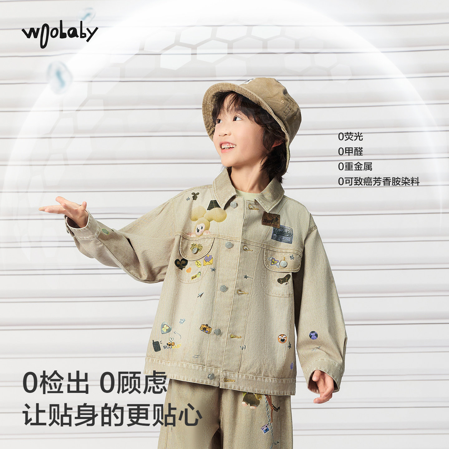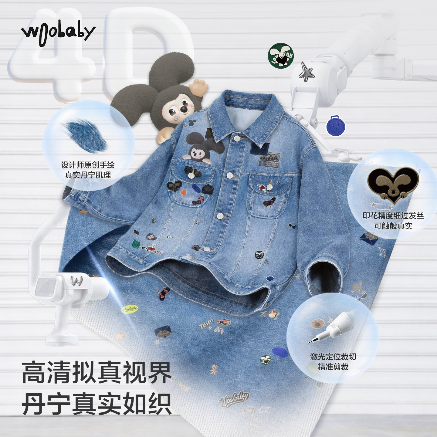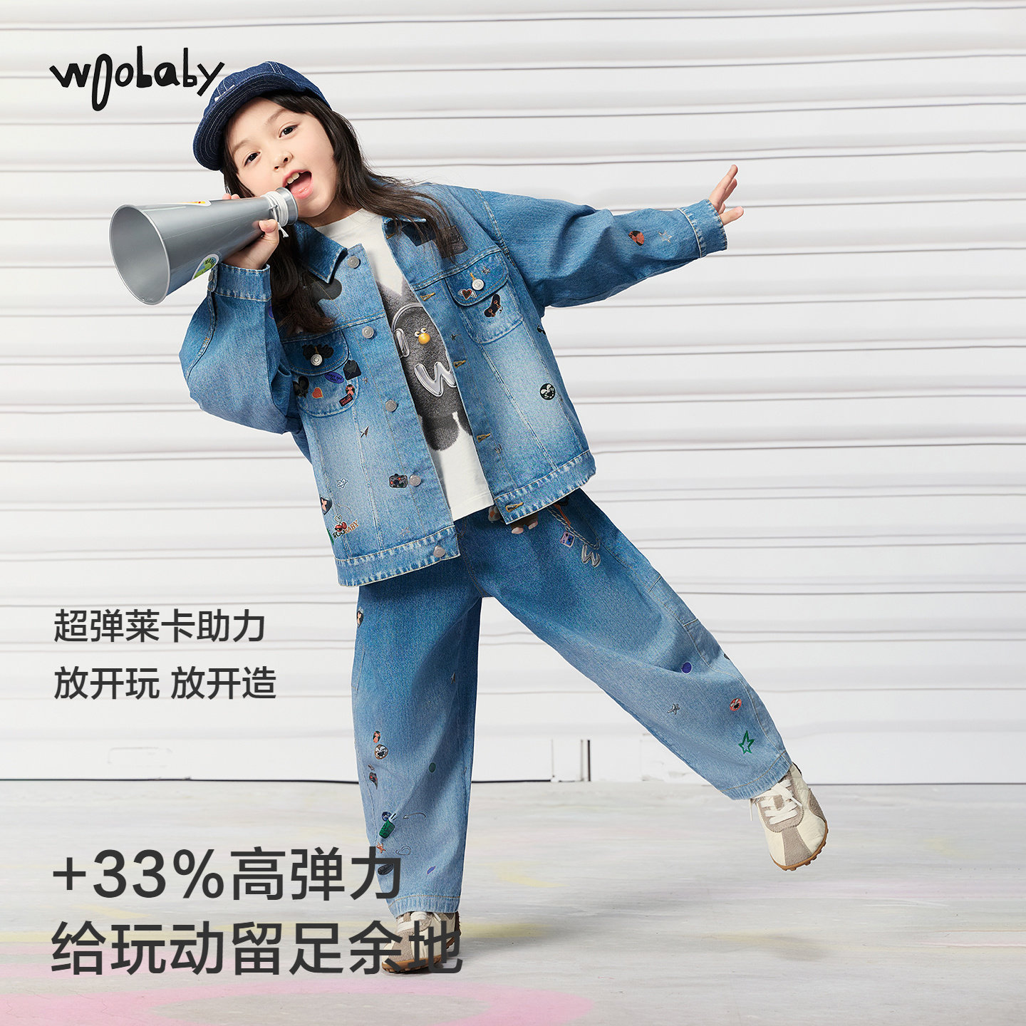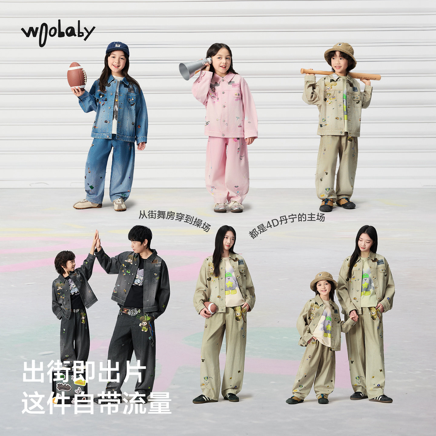 📚 [4D丹宁]woobaby儿童牛仔套装男女童26年春新品亲子复古外套裤子