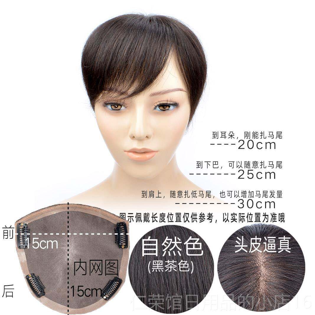 📚 正品真发假发片头顶补块增加发量改发善头显头圆轻齐薄自型然斜刘