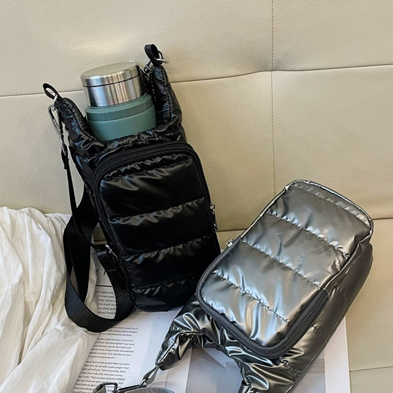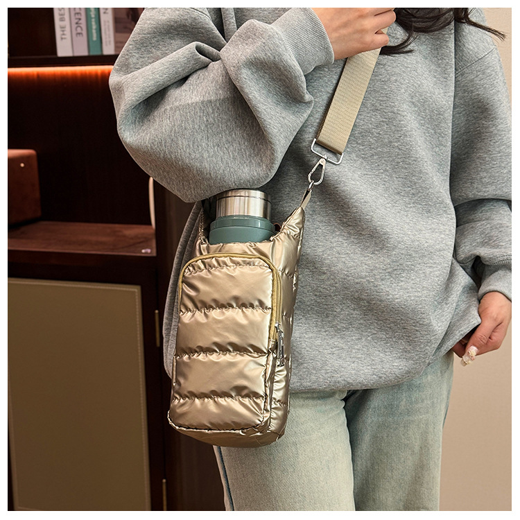 📚 冬季去哈尔滨旅行非必备装备女多功能小挎包水杯防寒羽绒棉保暖套
