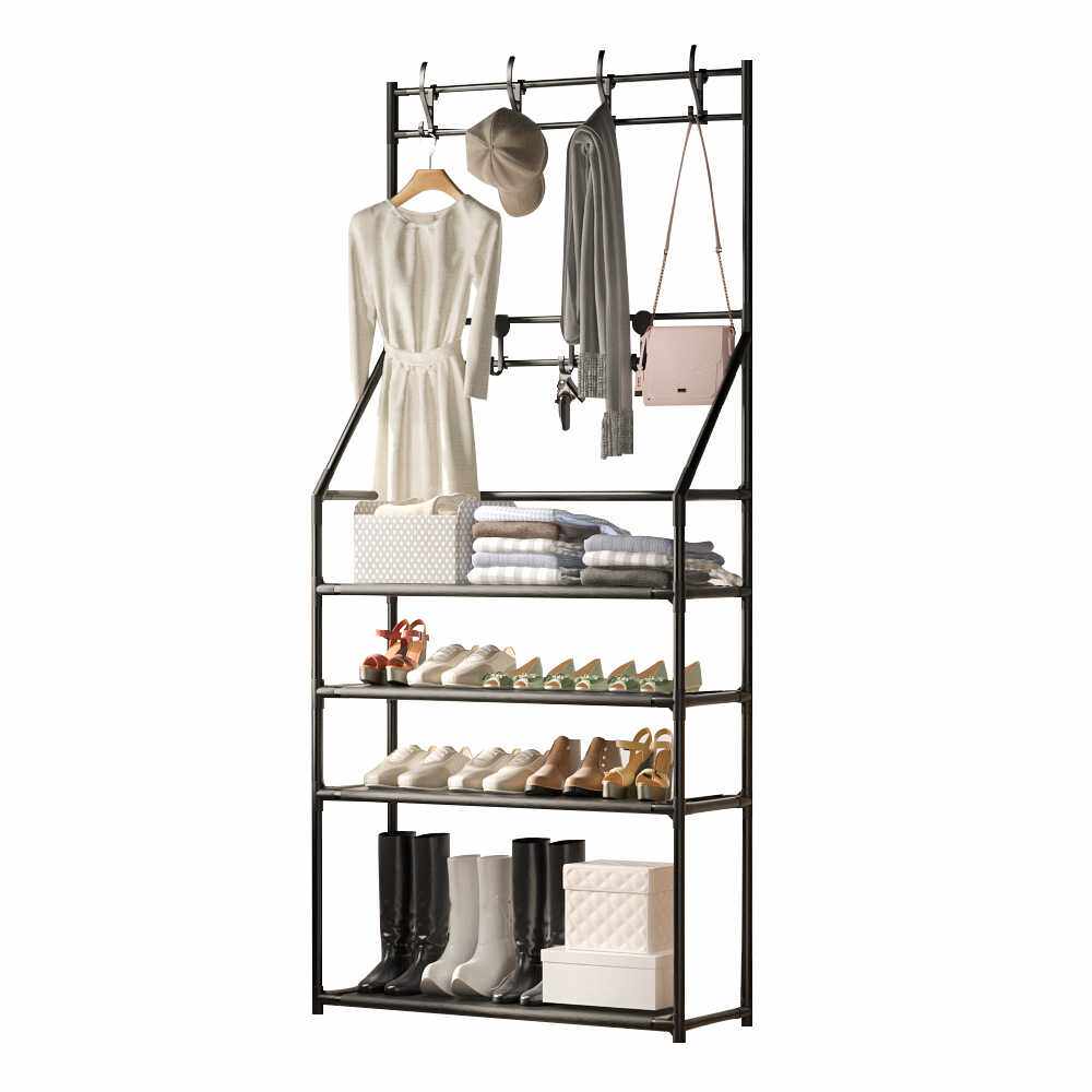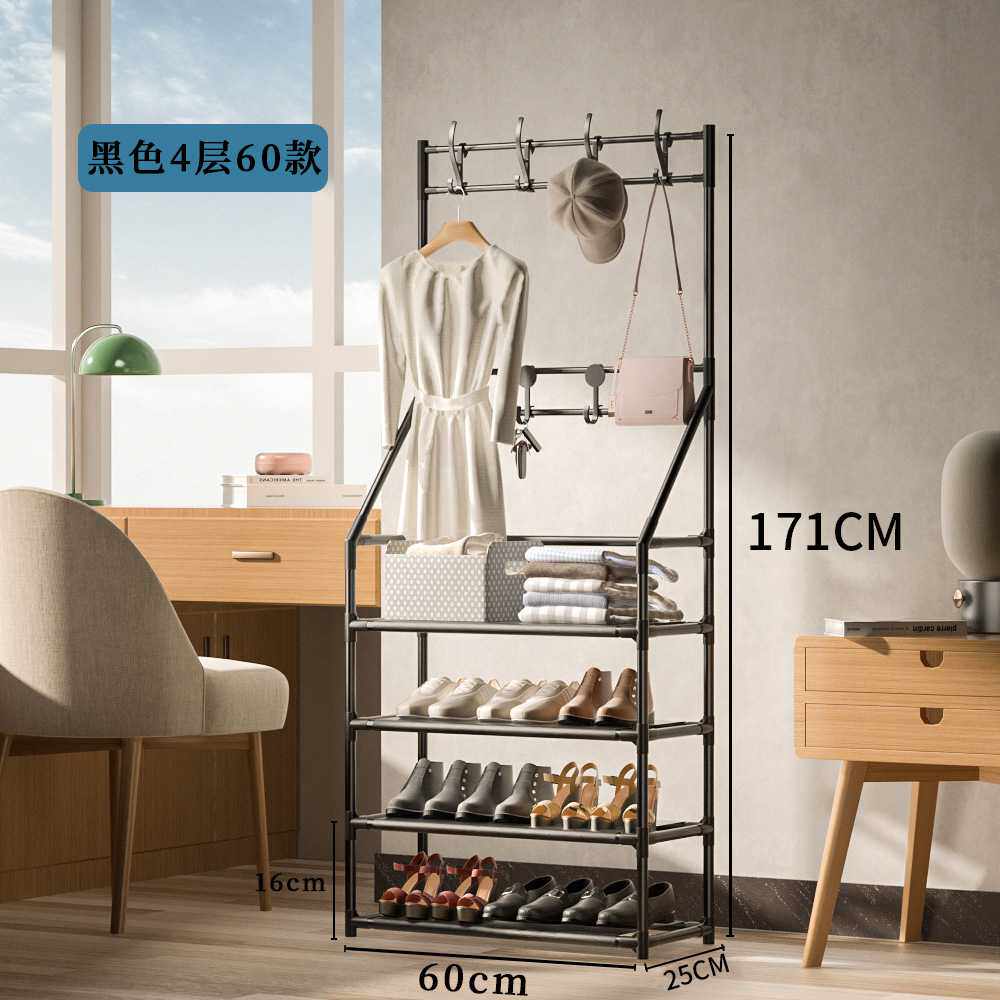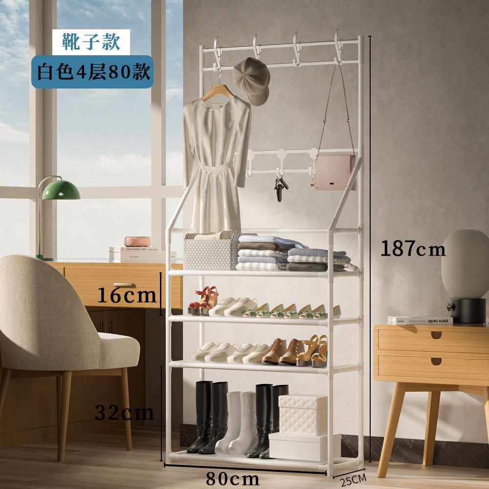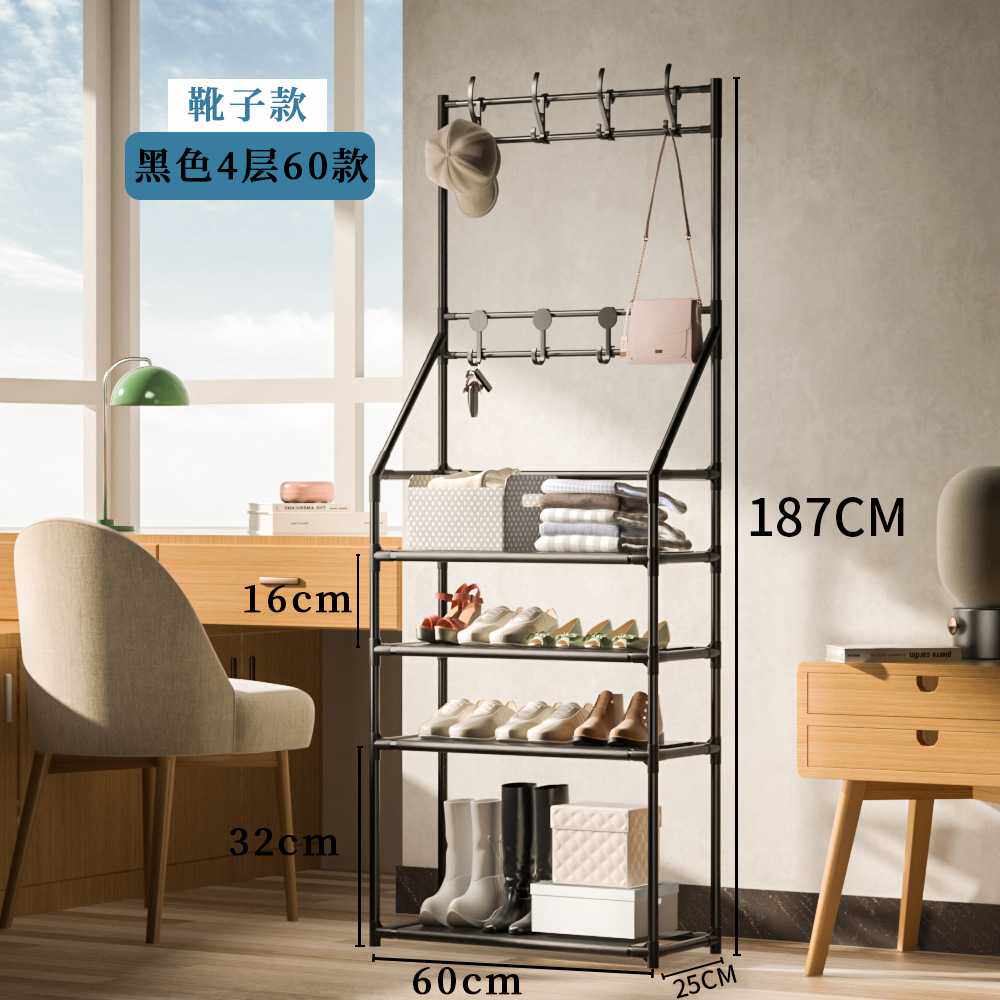 📚 家用多功能衣帽架落地衣架简易一体鞋架门口置物架多层组合鞋帽架