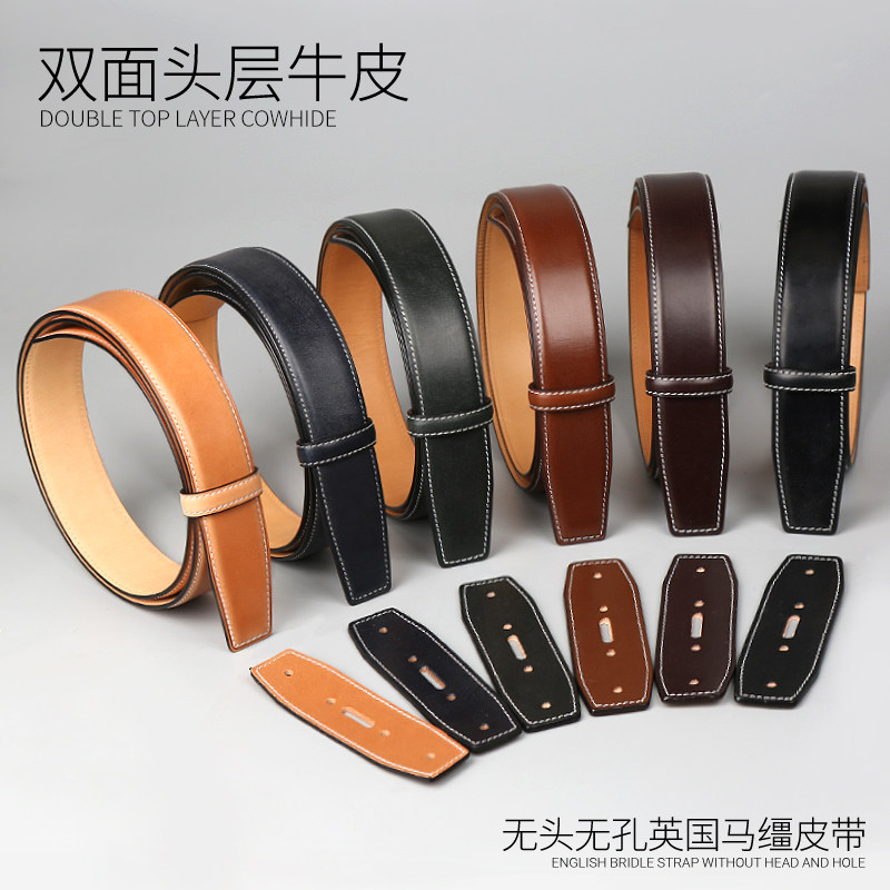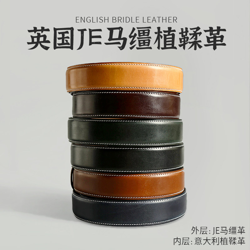📚 JE马缰革双面缝线无头皮带条男士真皮头层牛皮植鞣革商务休闲腰带