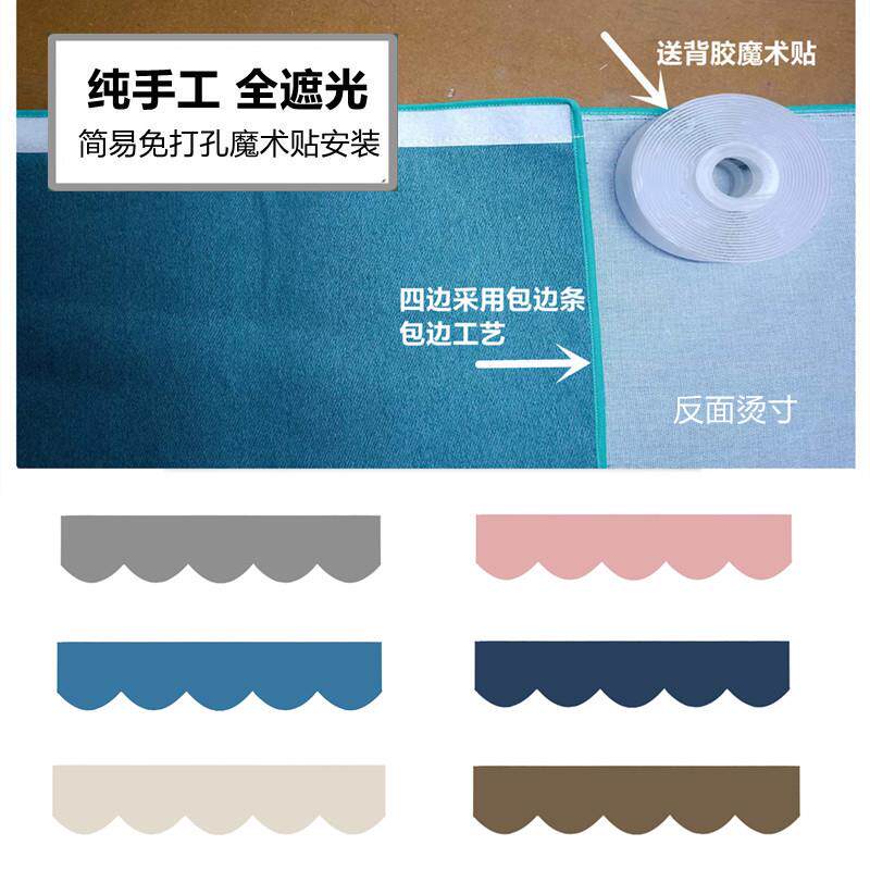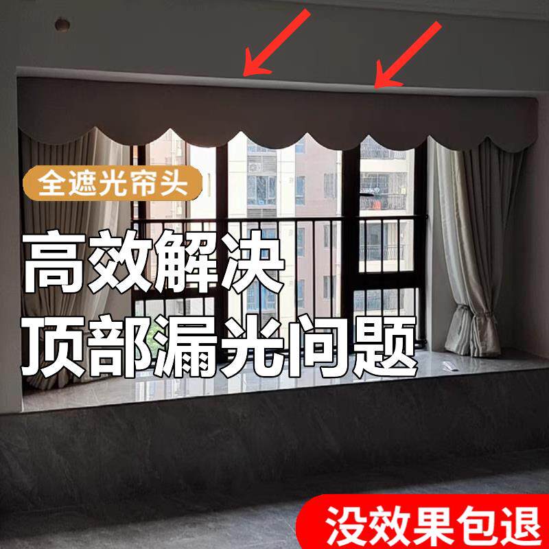 📚 罗马杆窗帘上方顶部漏光魔术贴自粘全遮光挡光窗幔帘头帘幔成品
